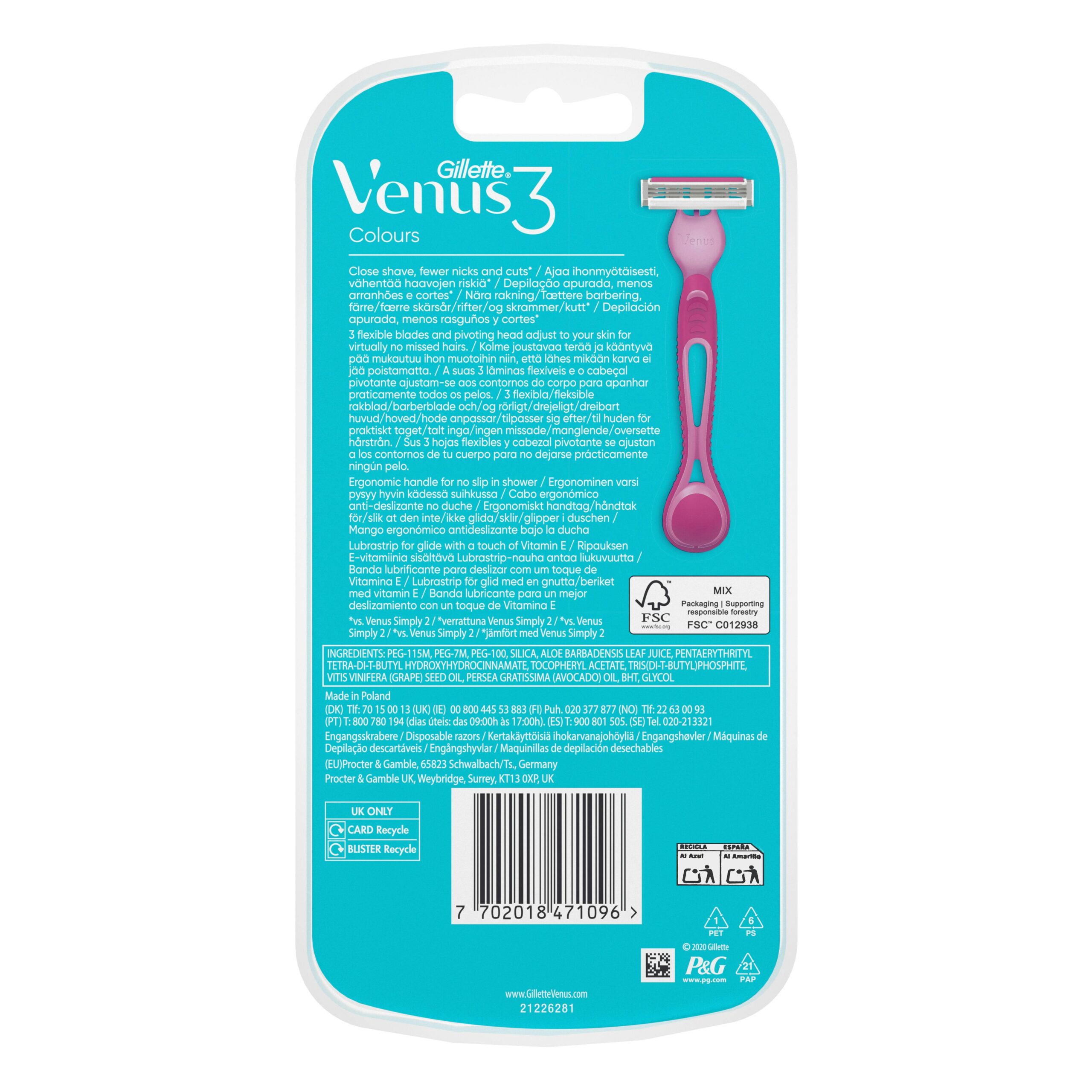 Maquinillas depilación desechables Gillette Venus Colors 3 hojas, pensado para tu higiene y cuidado personal de cada día. Fácil de usar y adecuado para la rutina habitual.