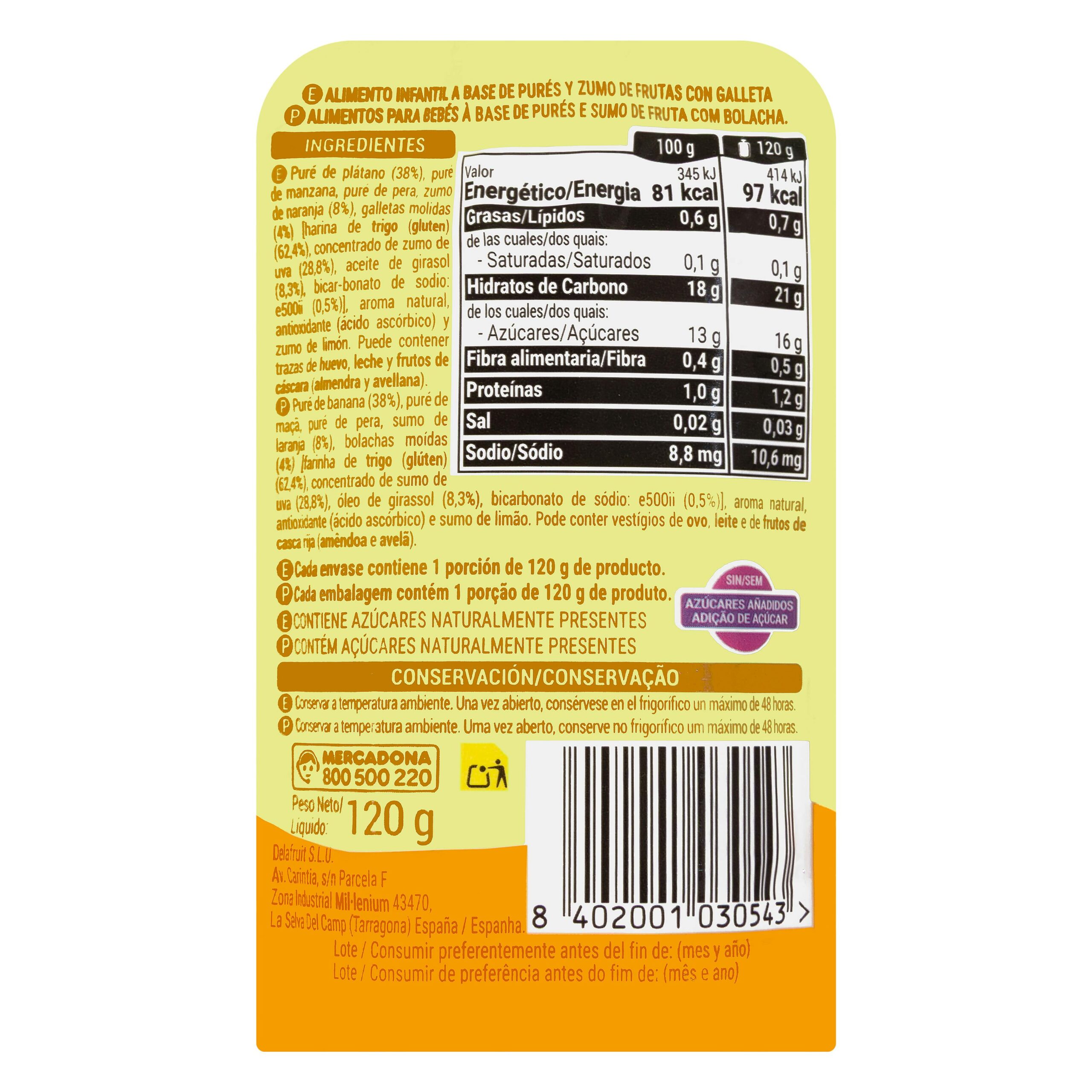 Papilla fruta variada con galleta Hacendado +6 meses
