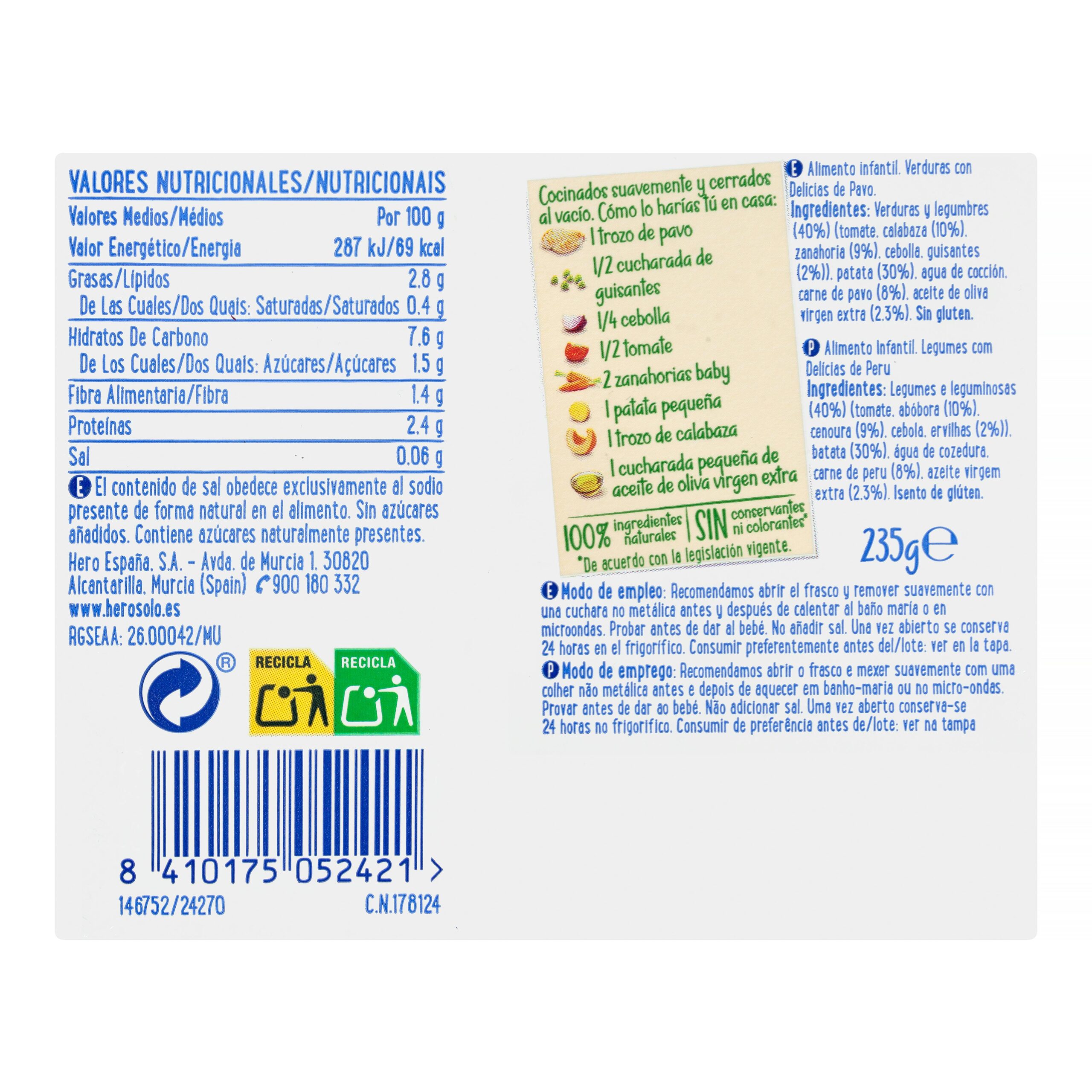 Papilla verduritas con delicias de pavo Hero Solo natur +6 meses