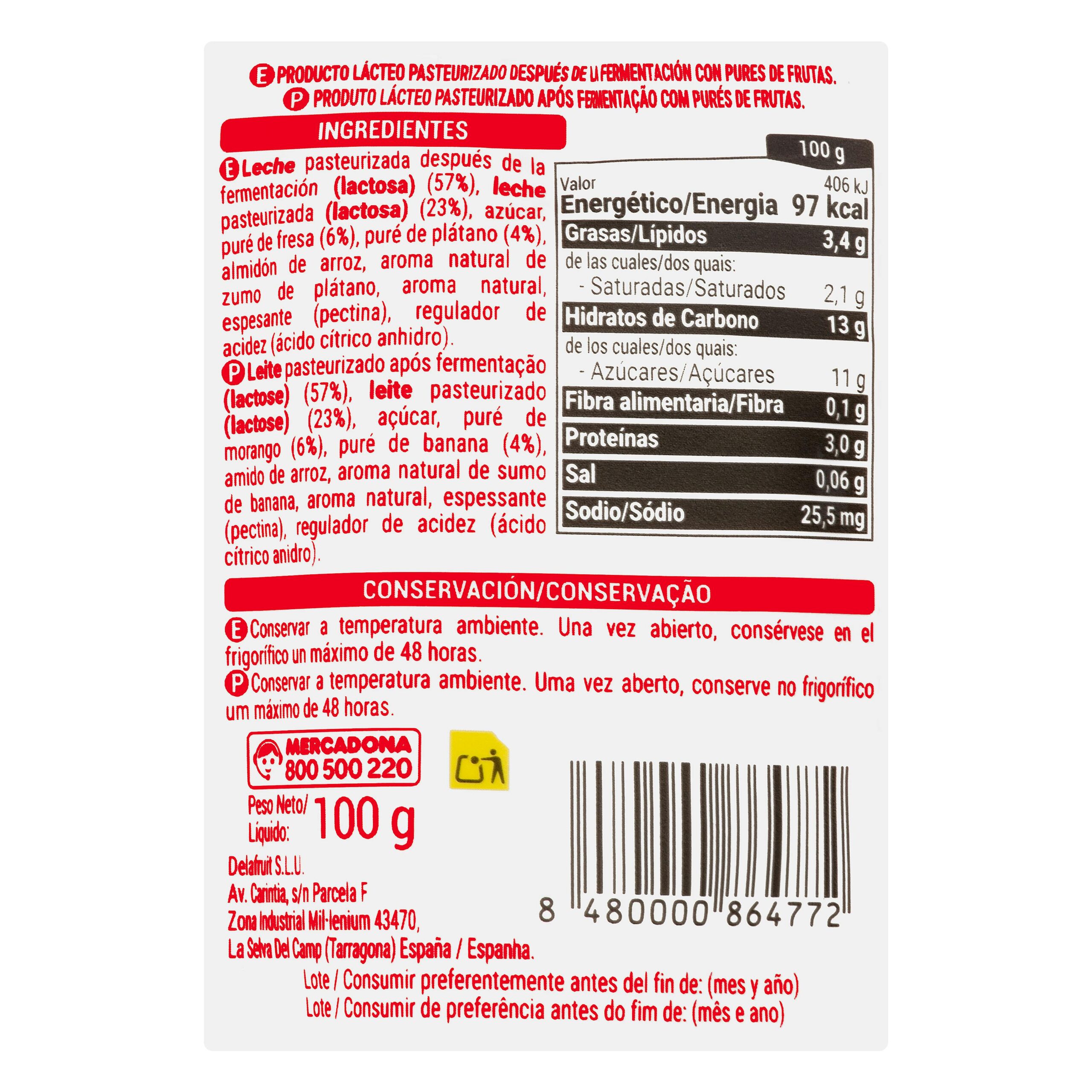 Postre lácteo infantil de fresa y plátano Hacendado +8 meses
