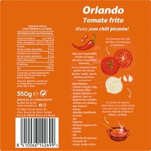 Tomate Frito con Chili Picante de ORLANDO, un producto español con sabor auténtico que enamora a quienes viven en Europa y a los extranjeros que disfrutan de la comida tradicional de España.