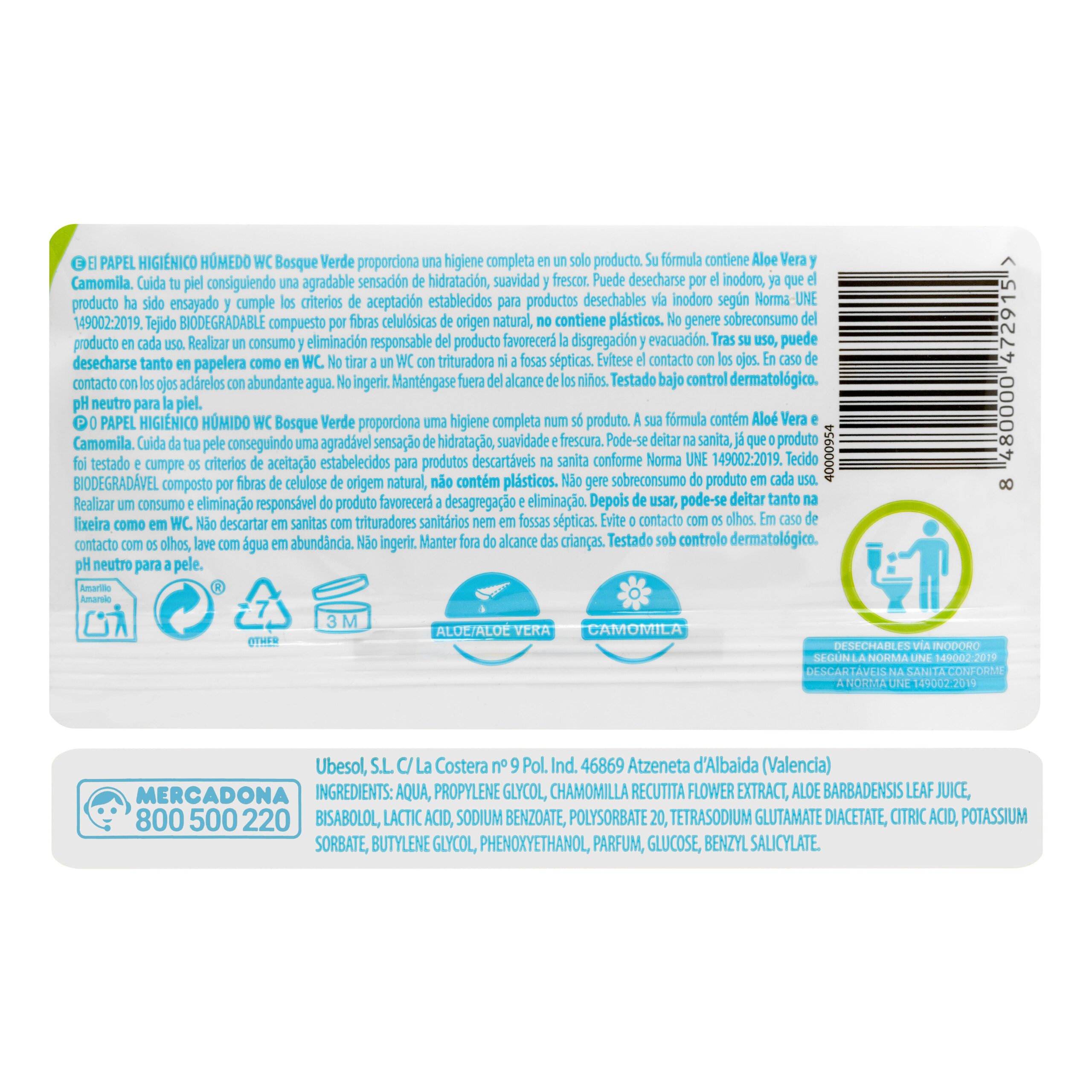 Papel higiénico húmedo WC Bosque Verde