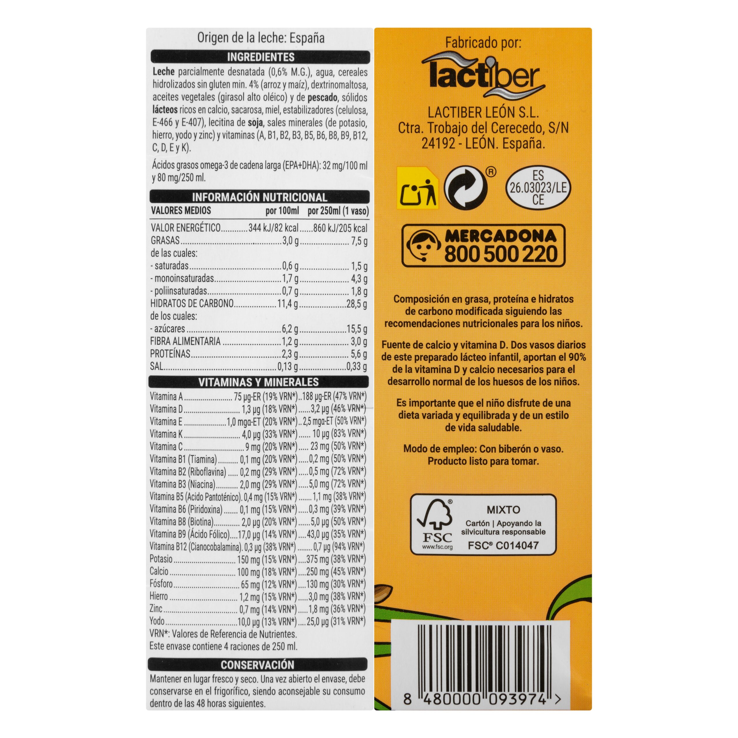 Preparado lácteo con cereales crecimiento Hacendado +1 año