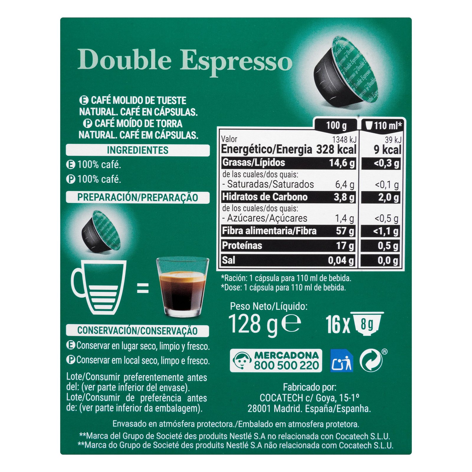 Café en cápsula doble espresso Hacendado con auténtico sabor de España.