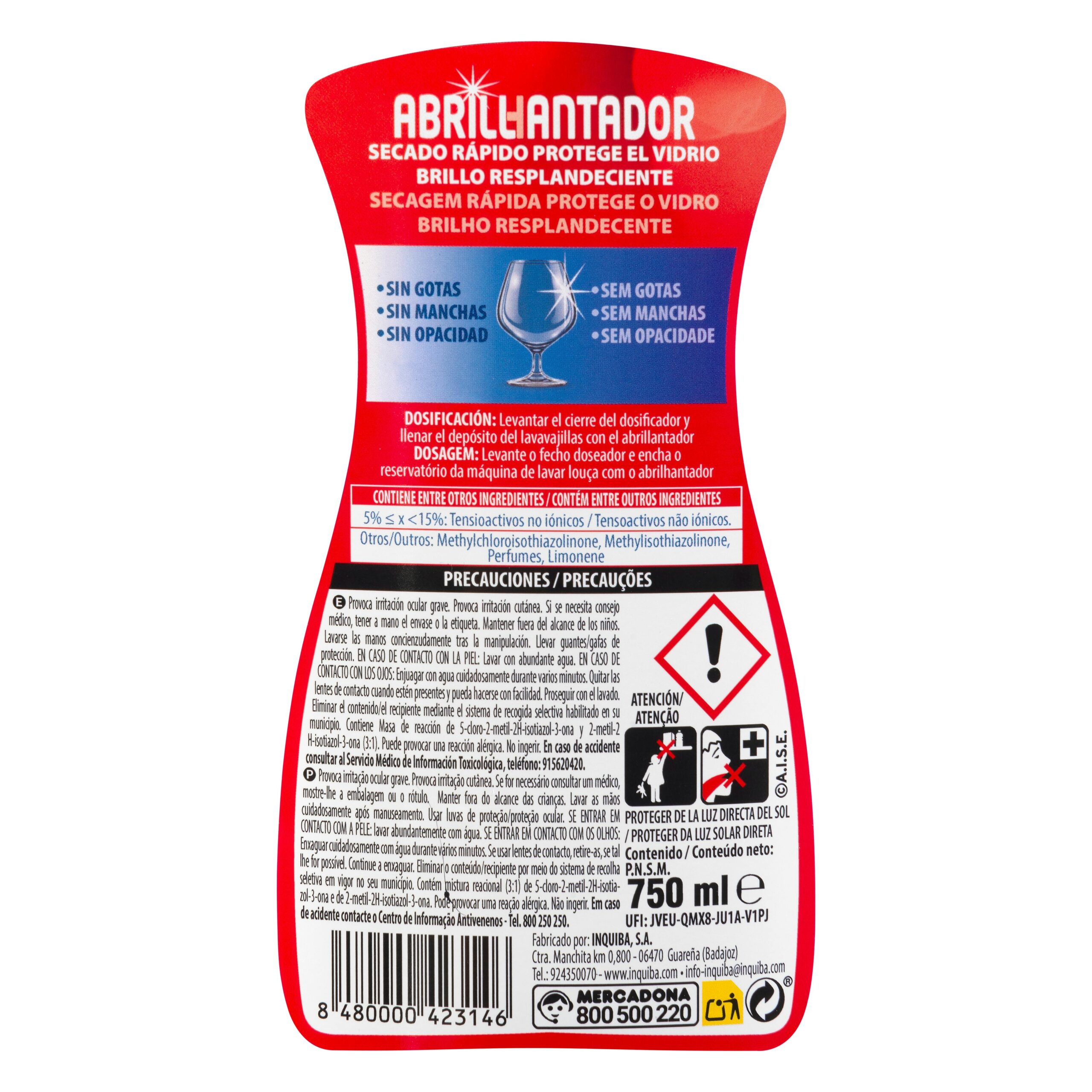 Abrillantador lavavajillas líquido Bosque Verde, producto de limpieza del hogar fabricado en España.