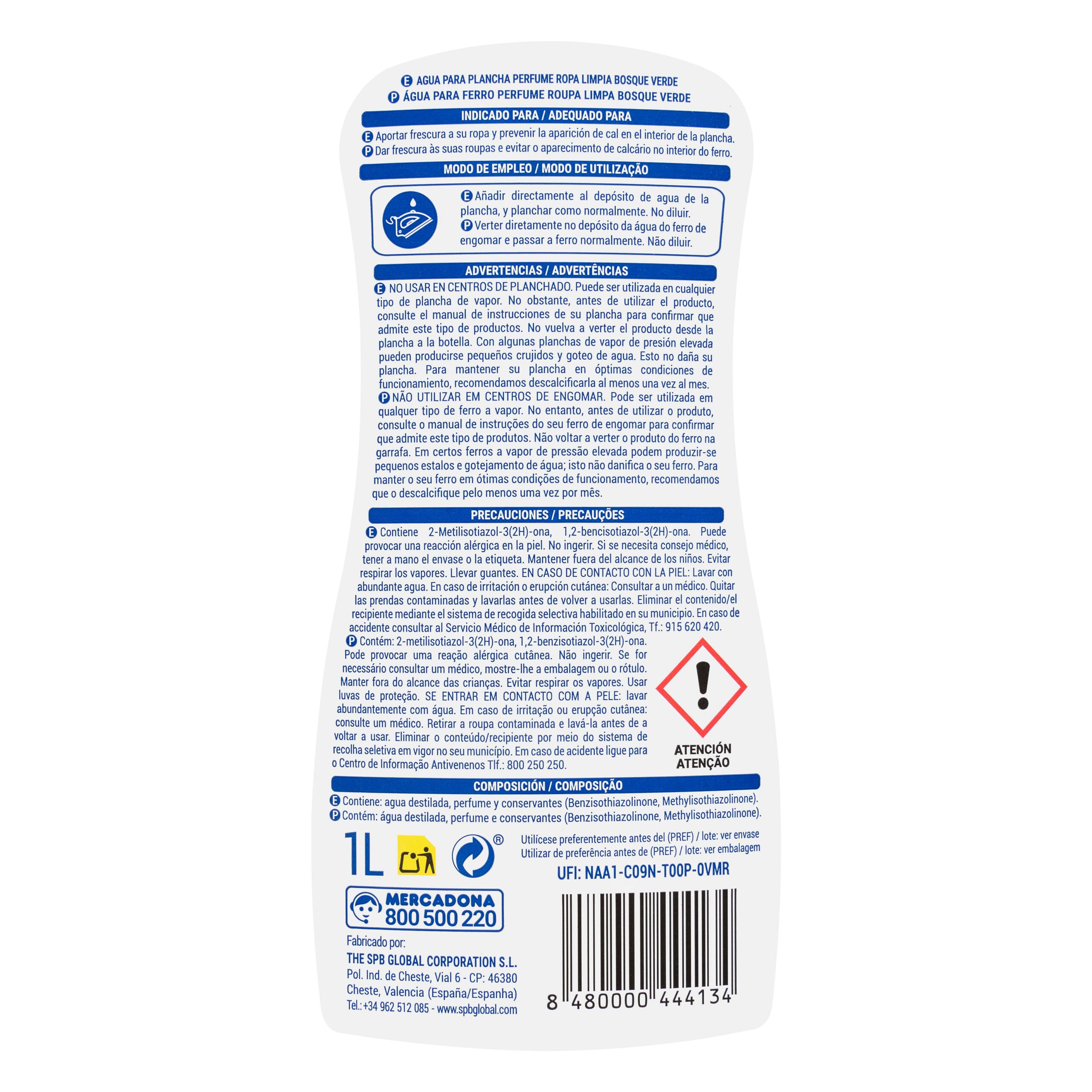 Agua para plancha Bosque Verde perfume ropa limpia, ideal para mantener tu hogar impecable. Un artículo de confianza del mercado español, perfecto para el día a día.