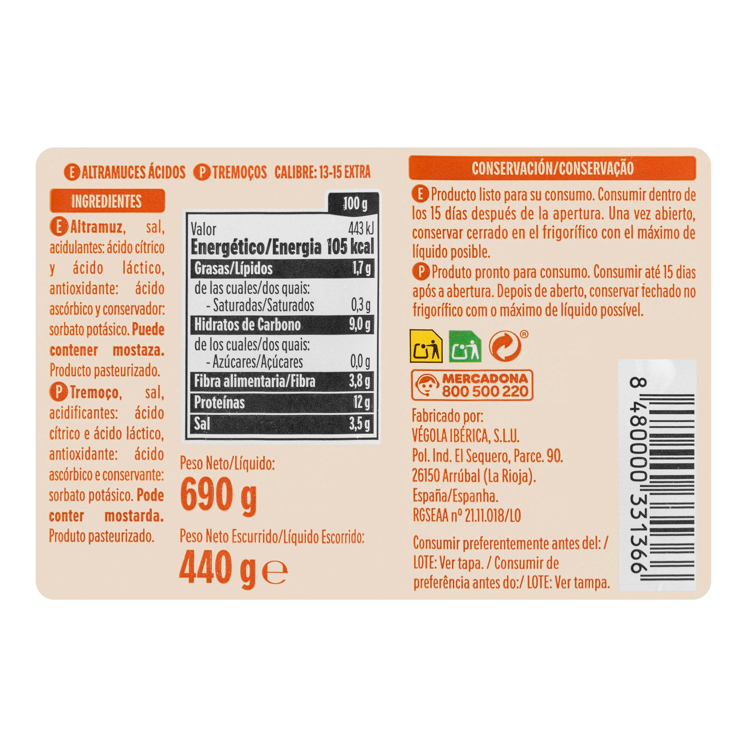 Altramuces, ideal para disfrutar a diario como aperitivo o acompañamiento. Un clásico del mercado español.