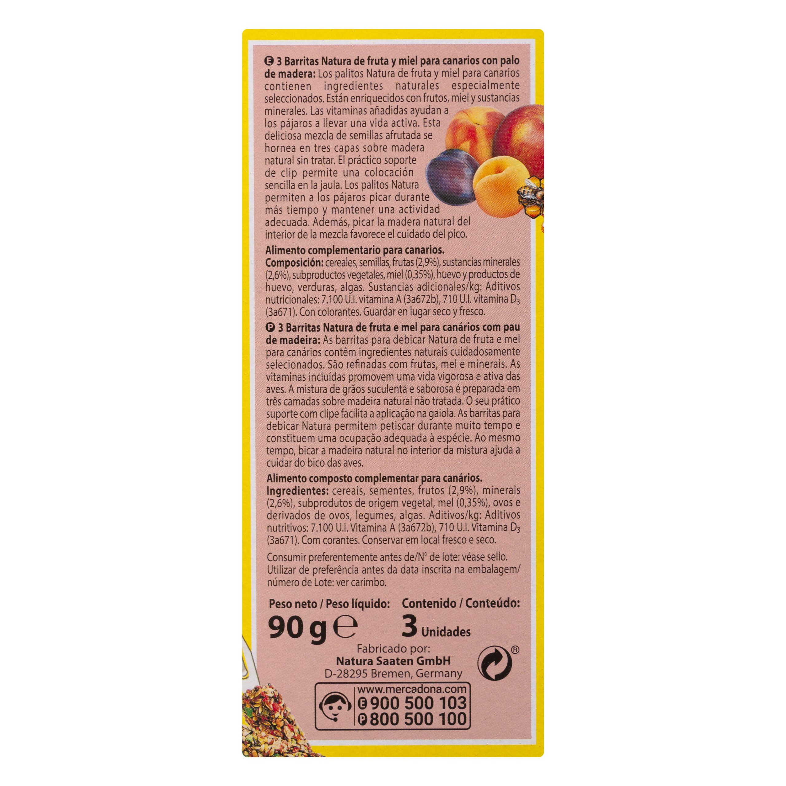 Alimentación y snacks para pájaros, con ingredientes seleccionados.
