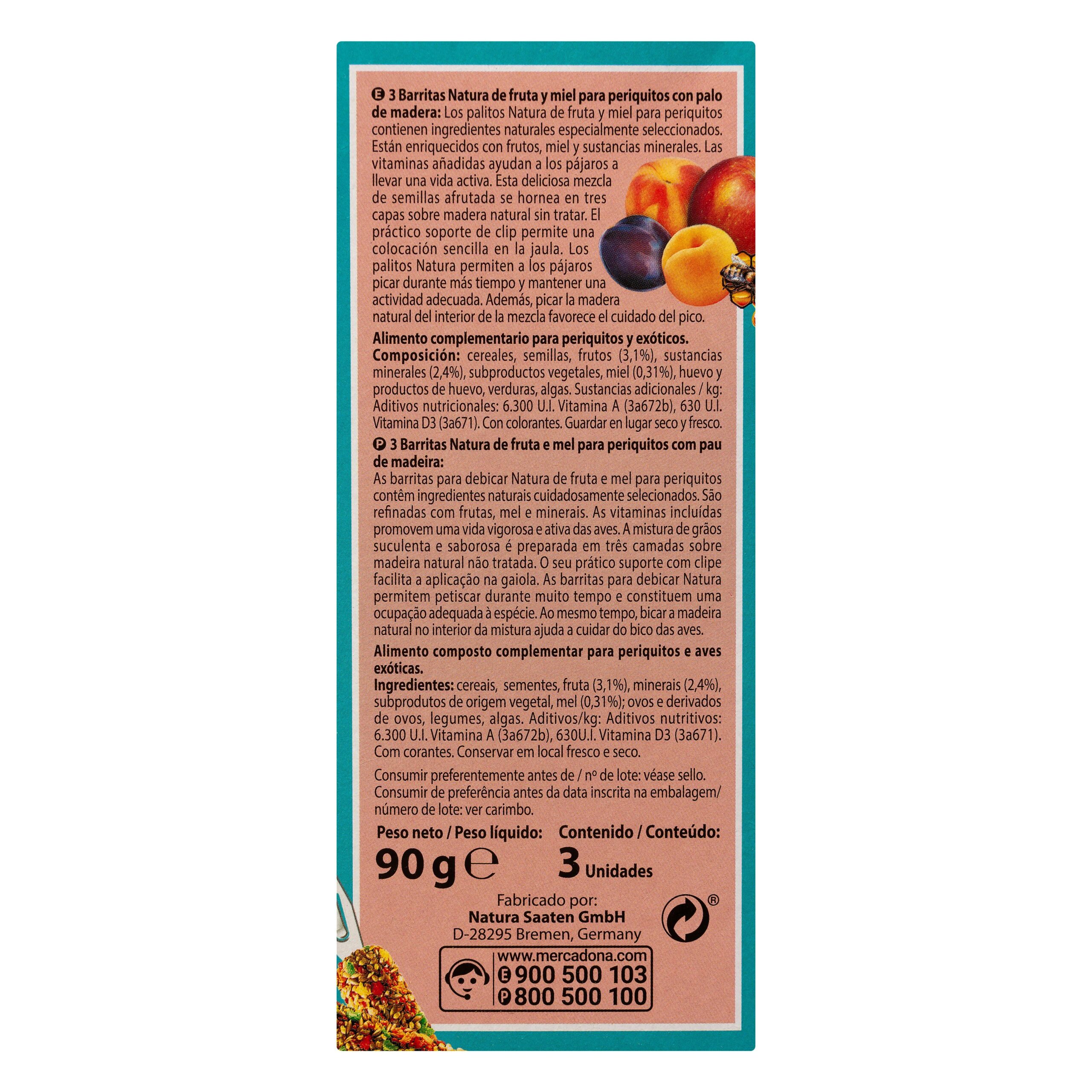 Barritas de fruta y miel para periquitos Natura