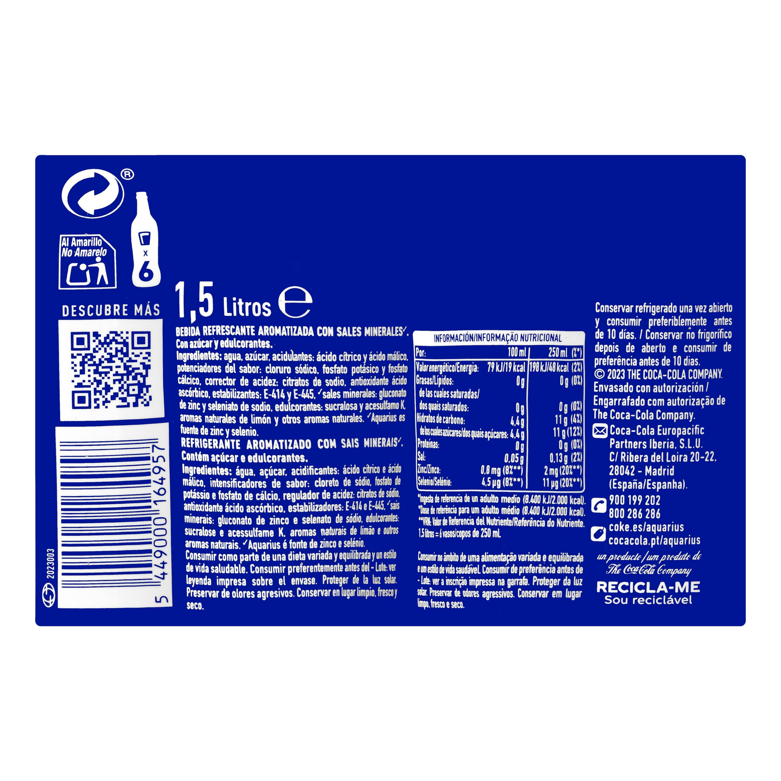 Bebida isotónica limón Aquarius