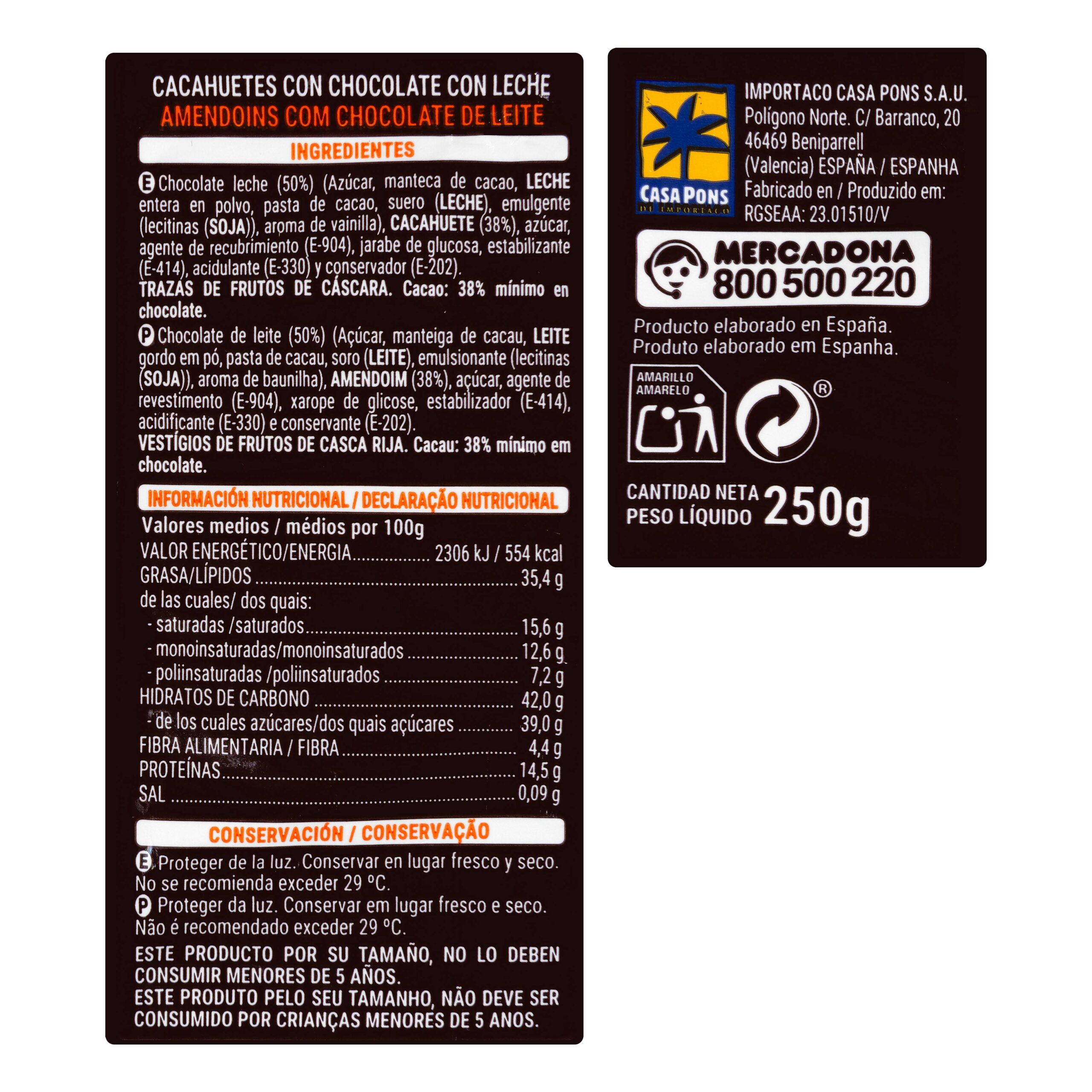 Cacahuetes Hacendado chocolate con leche con auténtico sabor de España.