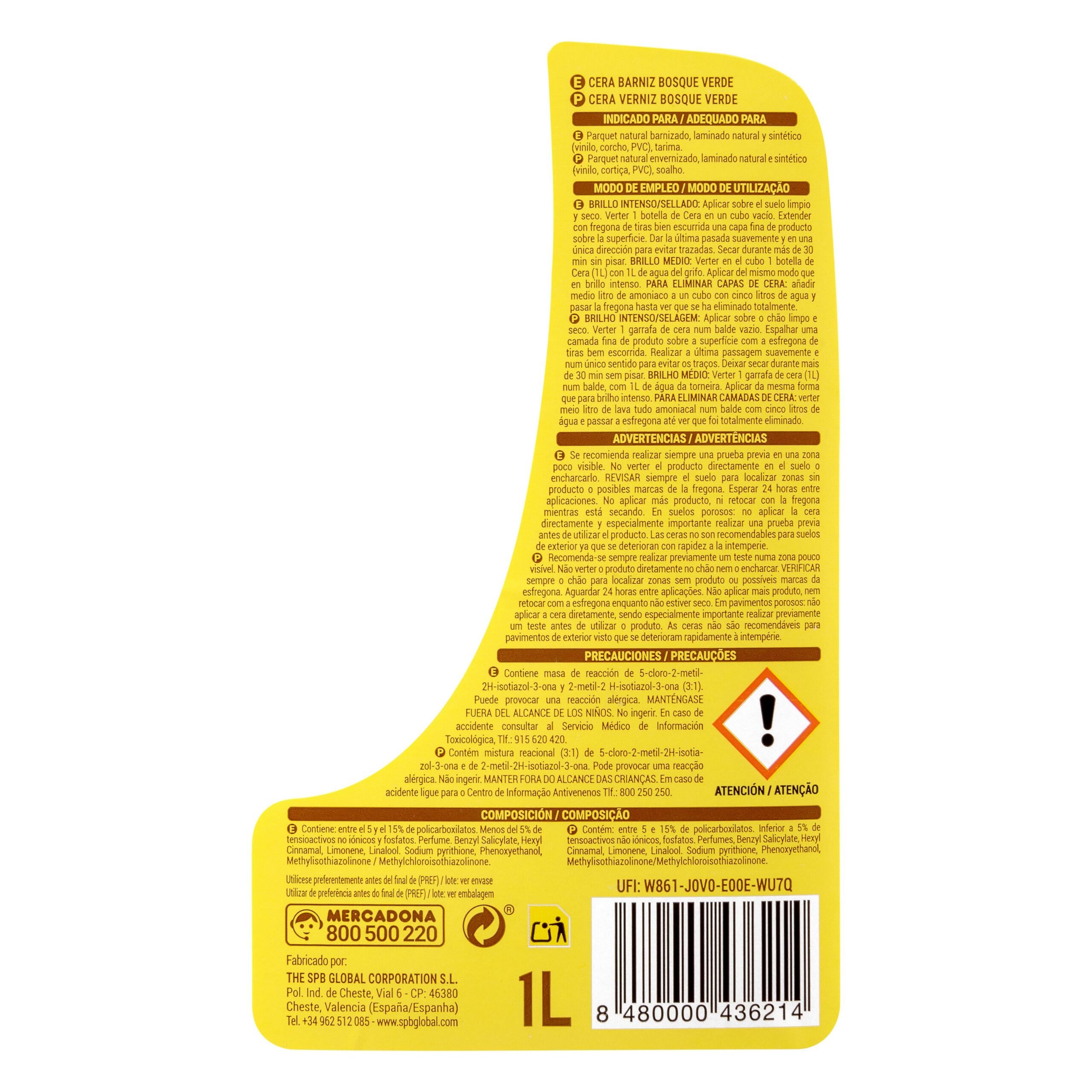 Cera suelos Bosque Verde parquet y laminados, producto de limpieza del hogar fabricado en España.