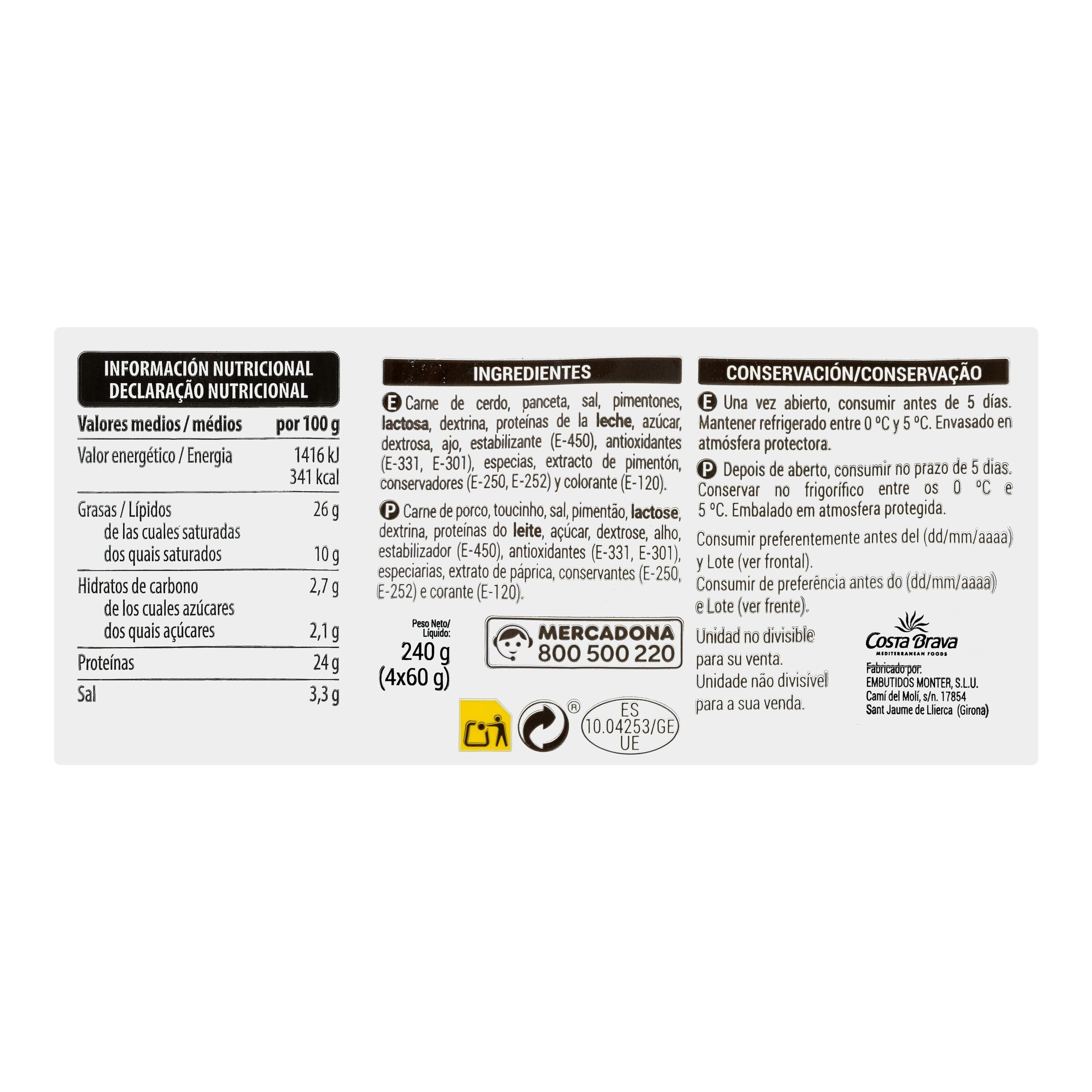 Chorizo extra lonchas