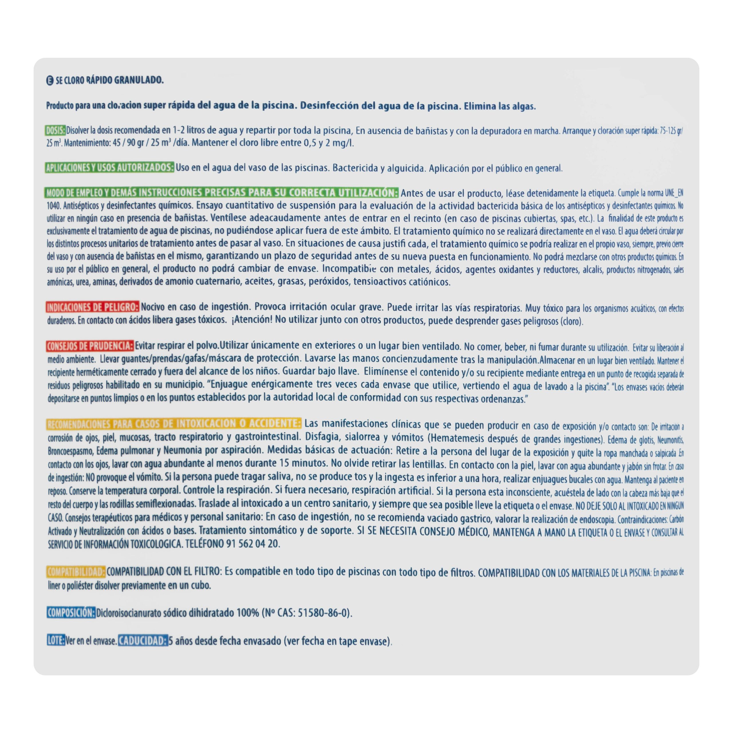 Cloro rápido granulado para piscina, ideal para mantener tu hogar impecable. Un artículo de confianza del mercado español, perfecto para el día a día.