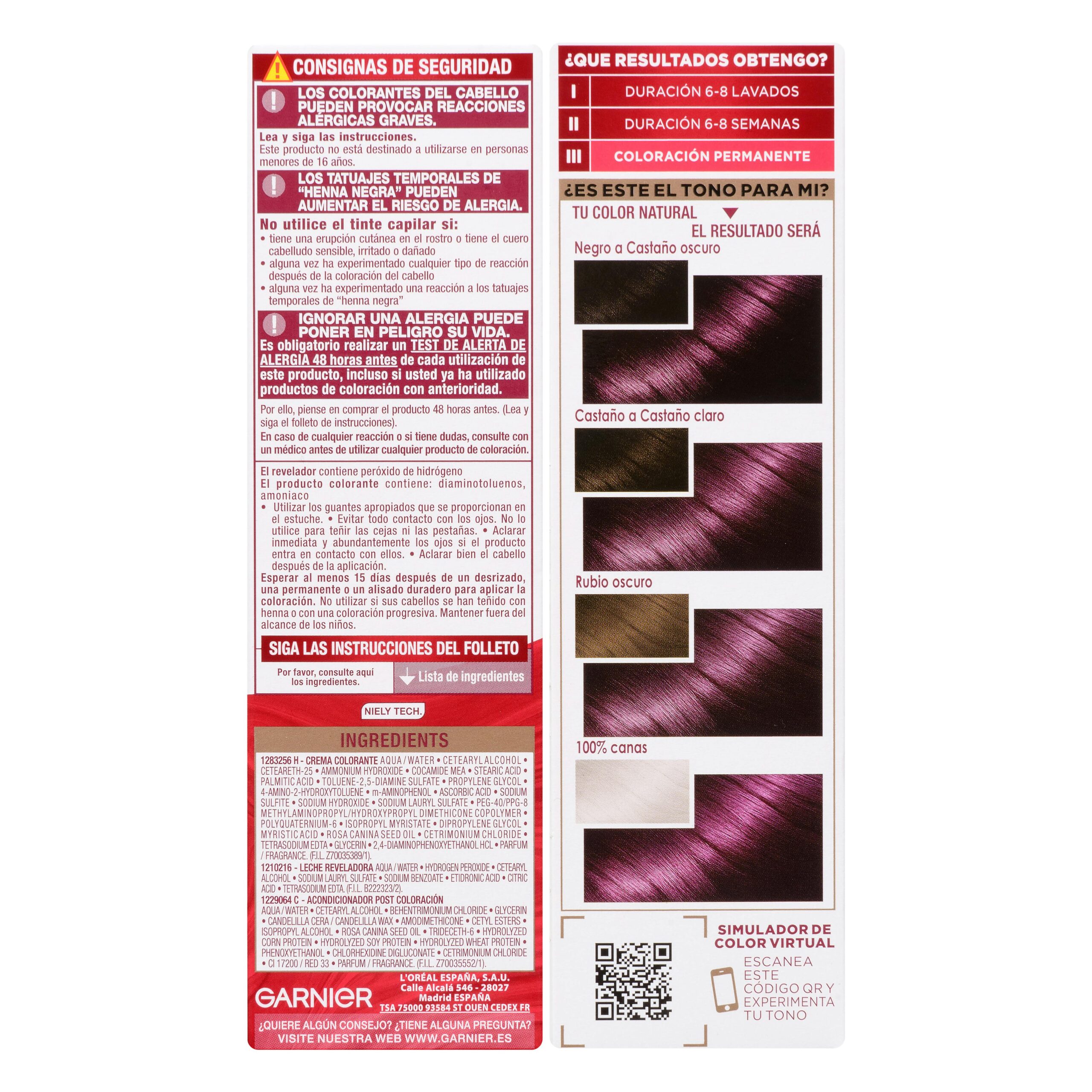 Coloración permanente Garnier 3.16 violín intenso para el cuidado diario.