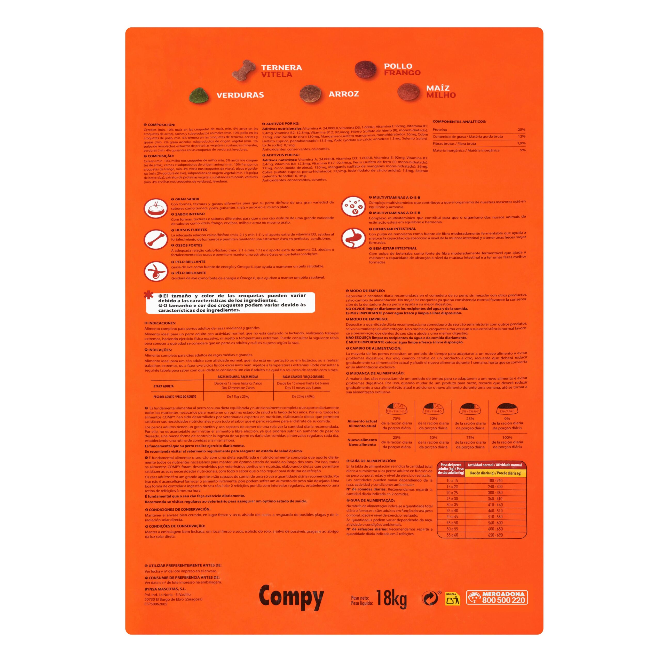 Comida perro adulto Compy con ternera, pollo, verduras y arroz