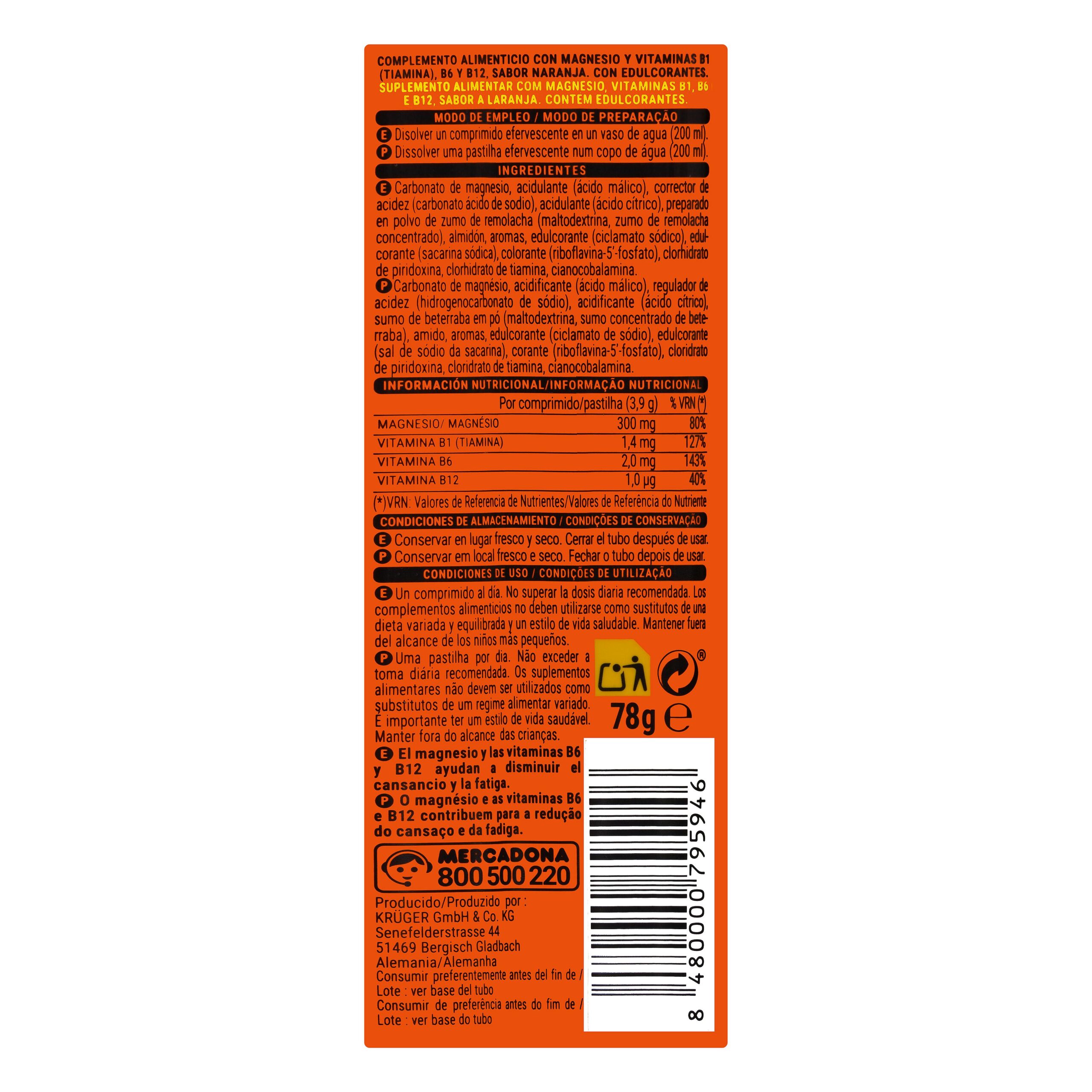 Comprimidos efervescentes magnesio Deliplus 300 mg sabor naranja con calidad del mercado español.