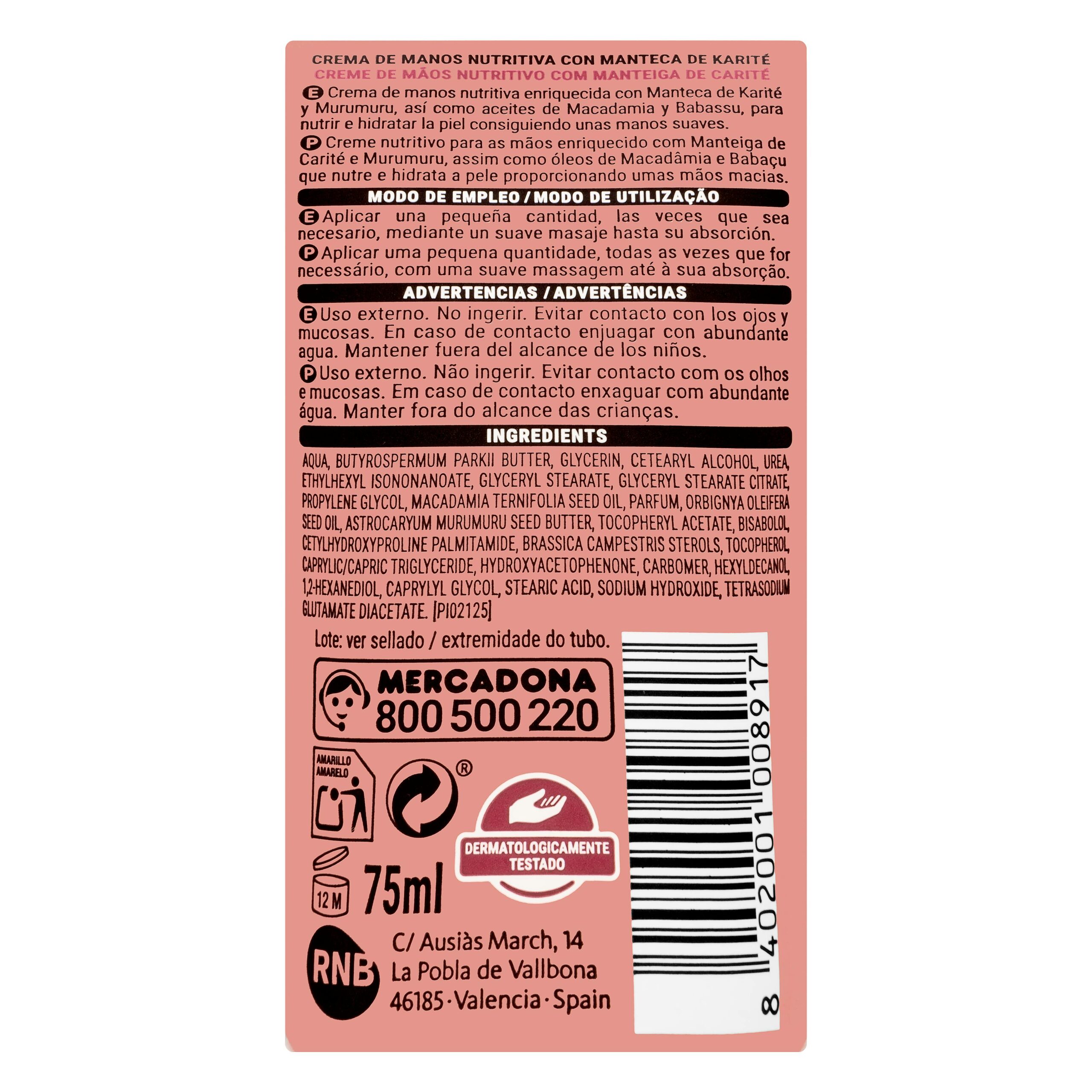 Crema de manos nutritiva Karité Deliplus para el cuidado diario.