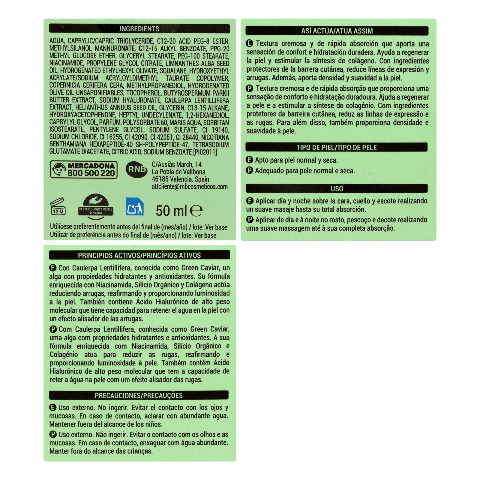 Crema facial Nutritiva redensificadora Green Caviar y Colágeno Prevent Age Ski Deliplus