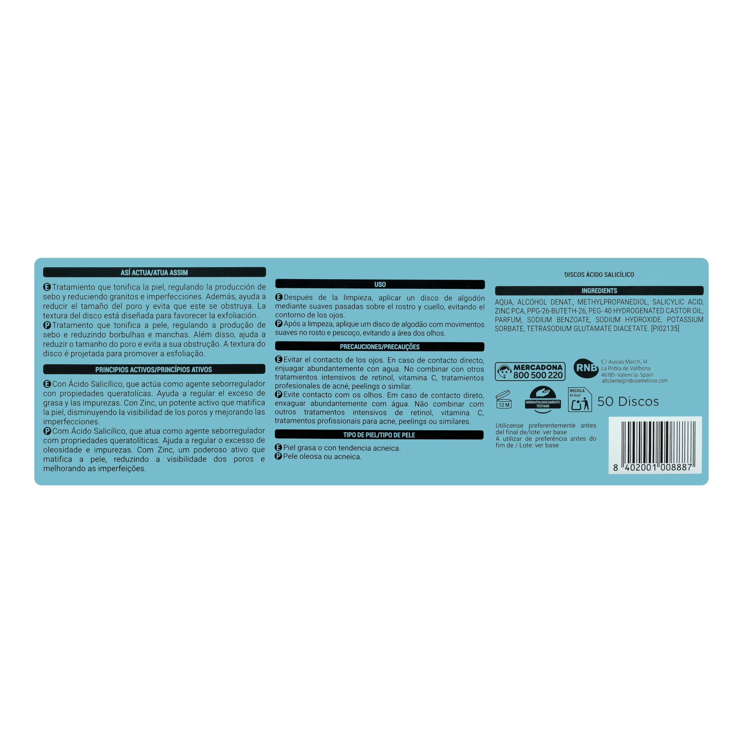 Discos impregnados ácido salicílico Deliplus Oil Free purificantes y seborreguladores para el cuidado diario.