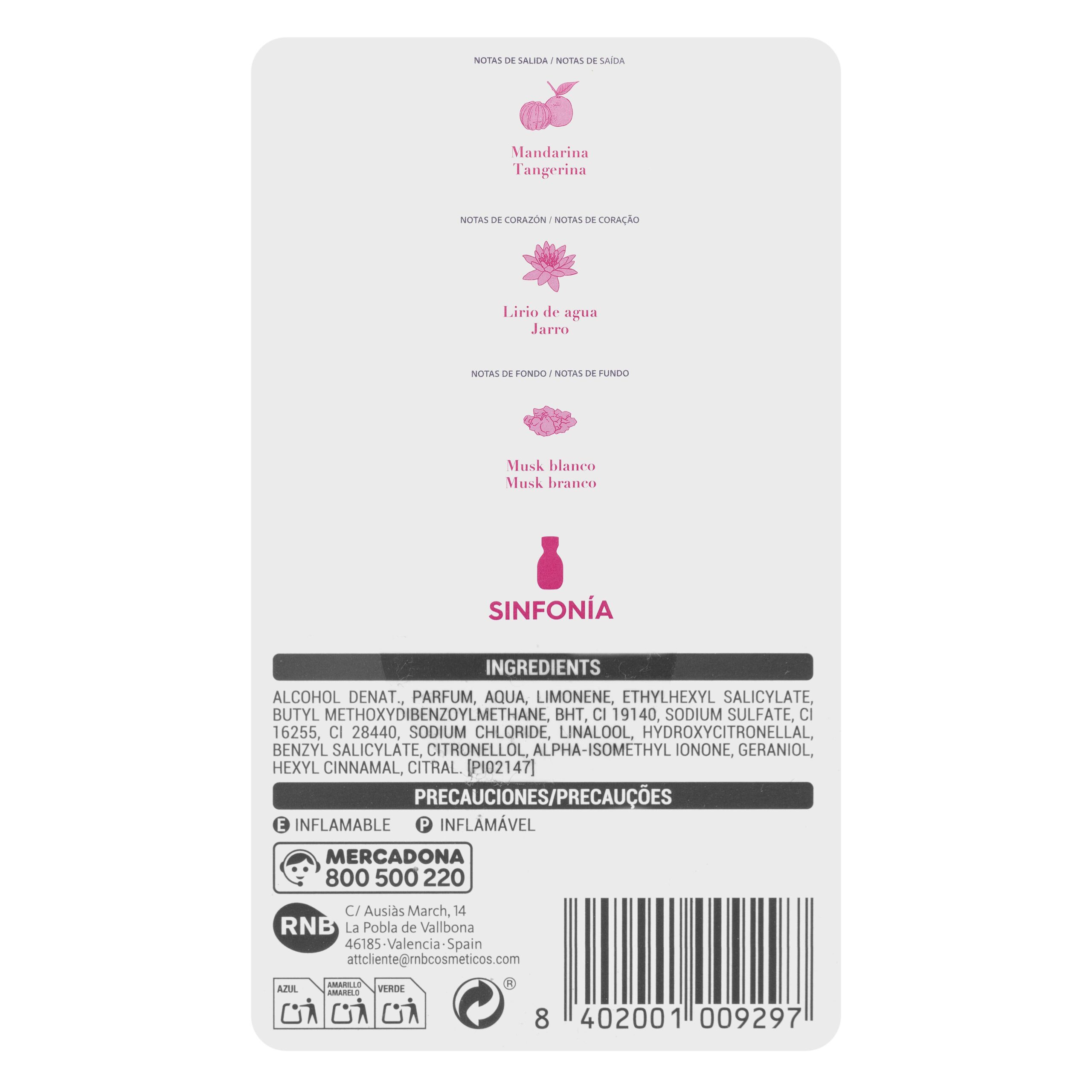 Eau de parfum mujer Como Tú Sinfonía para el cuidado diario.