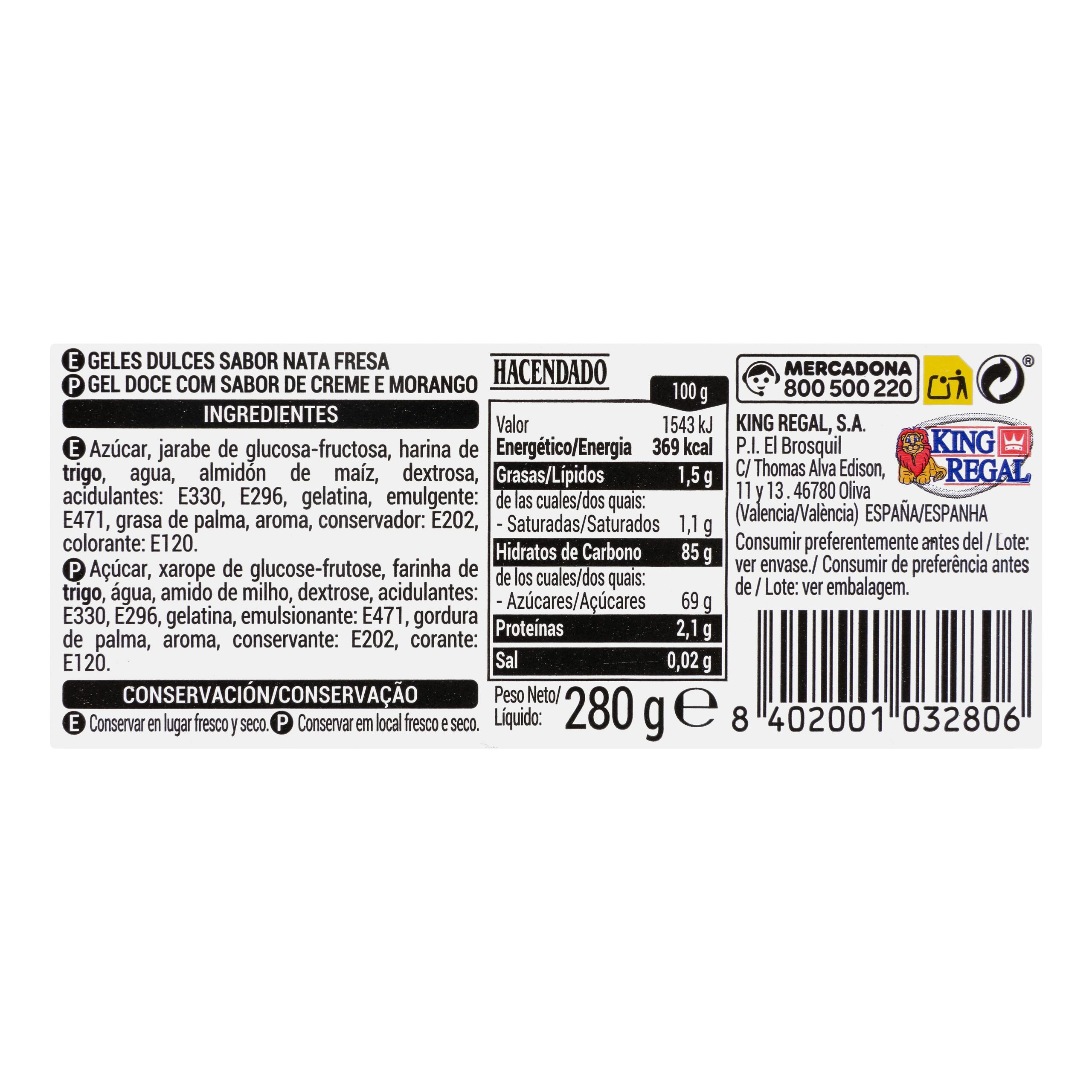 Golosinas tubos rellenos Hacendado sabor nata y fresa con auténtico sabor de España.
