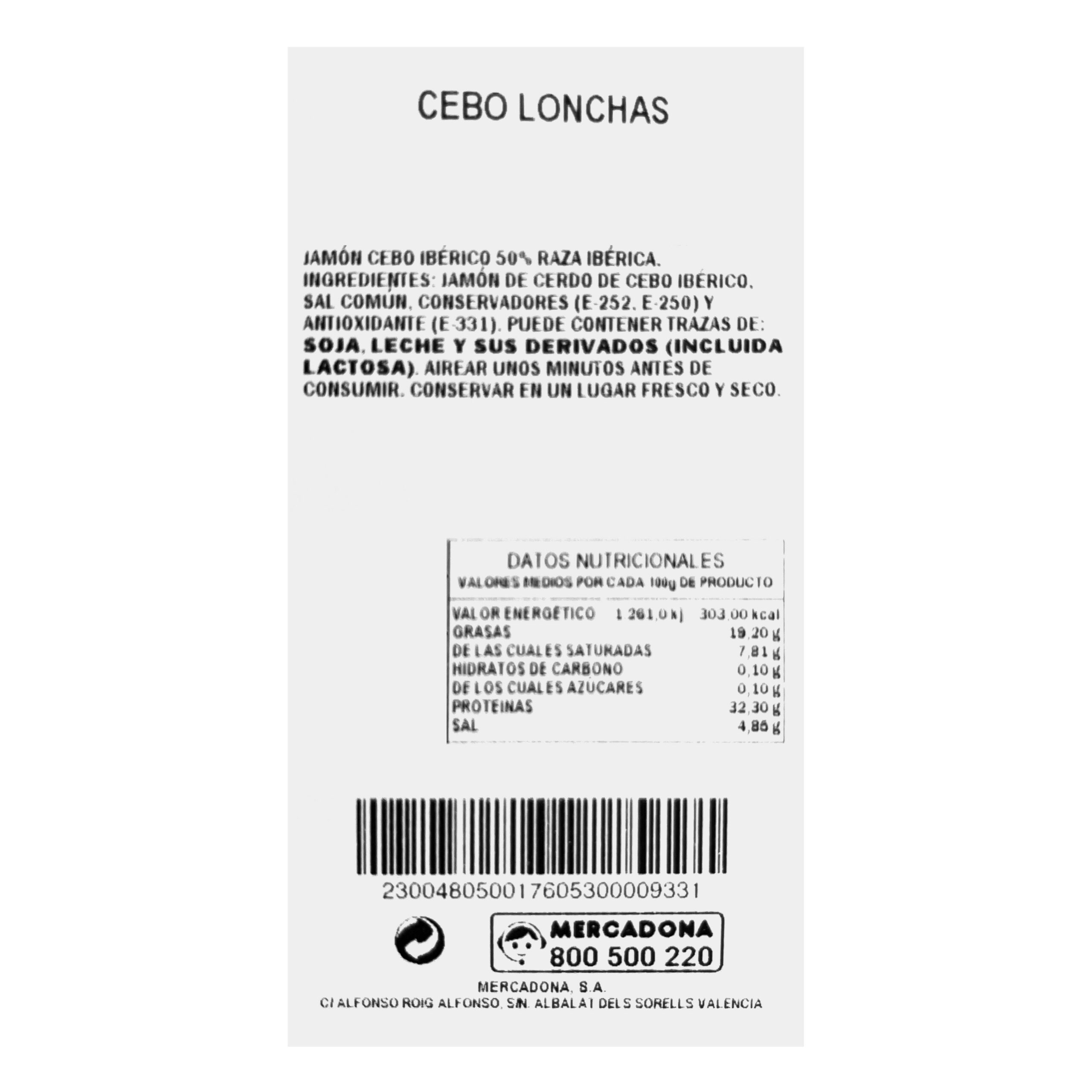 Jamón cebo ibérico cortado a máquina, elaborado en España con ingredientes de primera calidad. Perfecto para degustar en tapas, tablas de embutidos o acompañado de un buen vino.