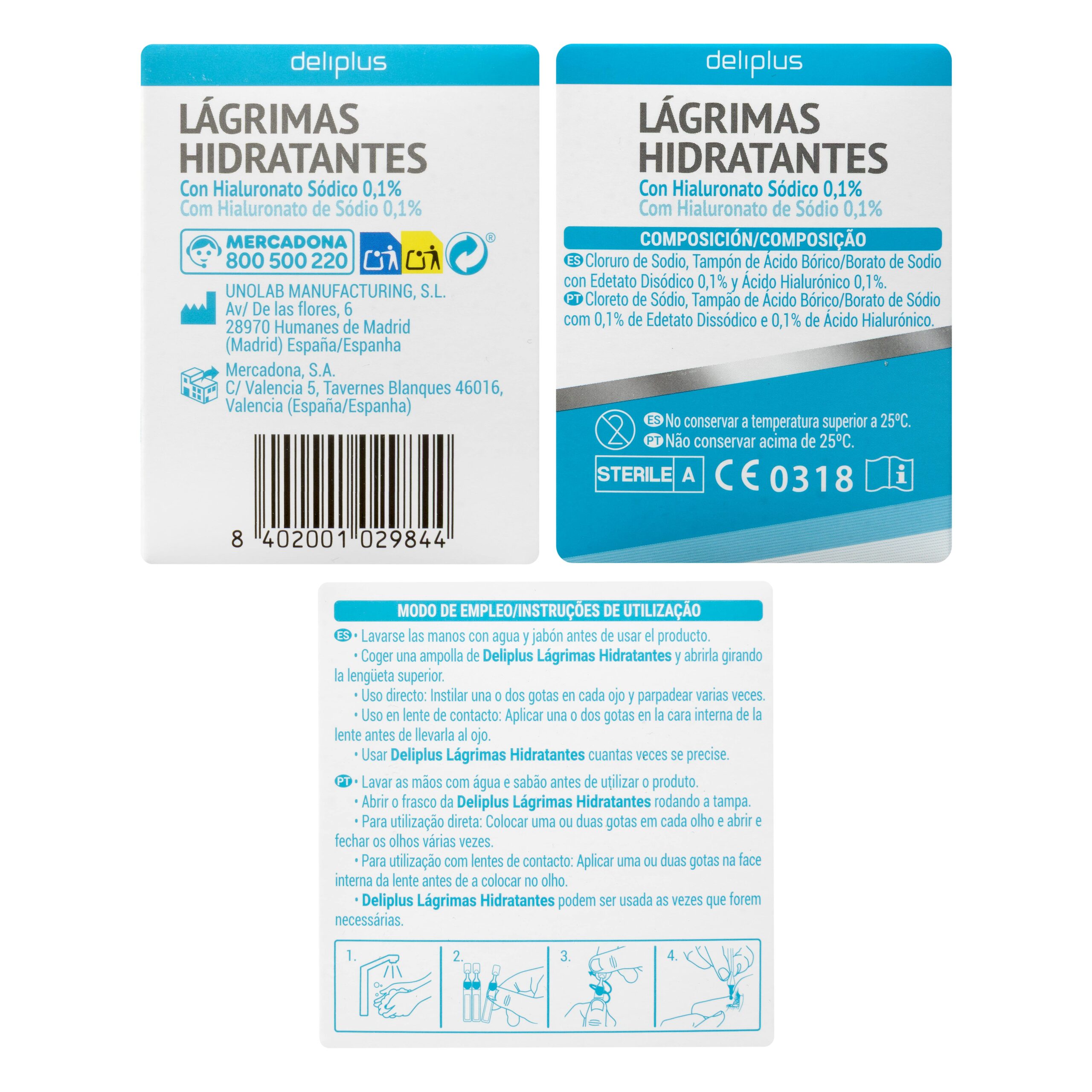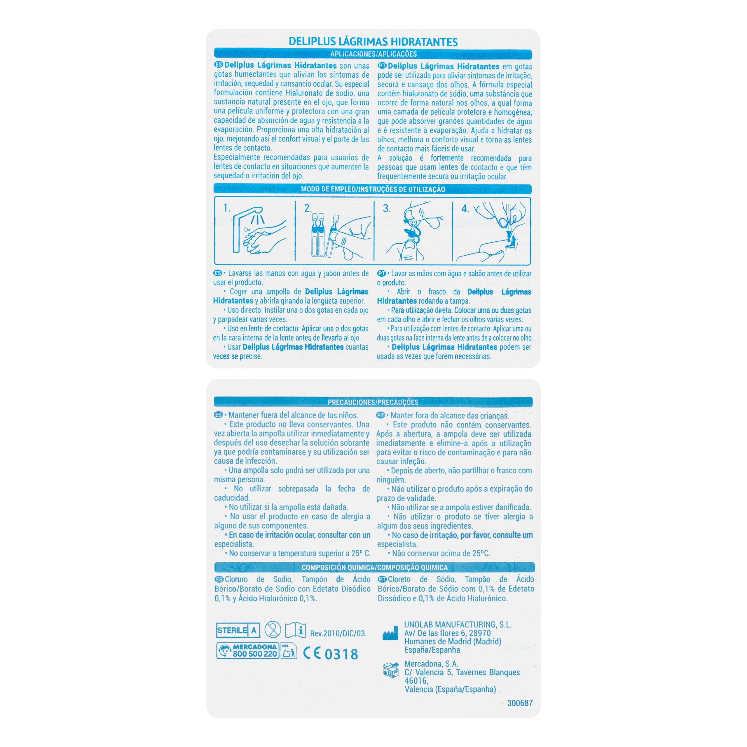 Lágrimas hidratantes para los ojos Deliplus con hialuronato sódico 0,1% con calidad del mercado español.