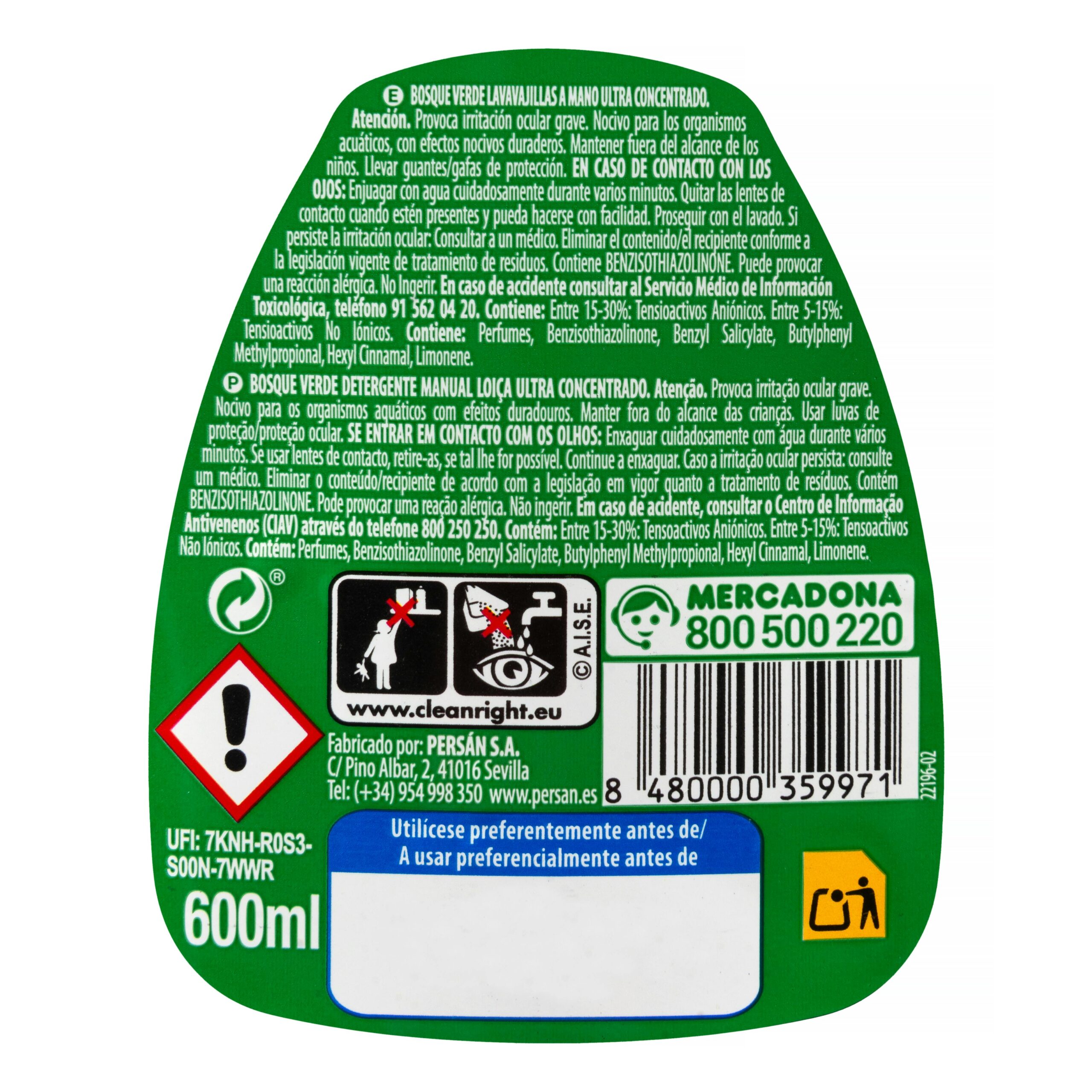 Lavavajillas Ultra concentrado Bosque Verde, producto de limpieza del hogar fabricado en España.