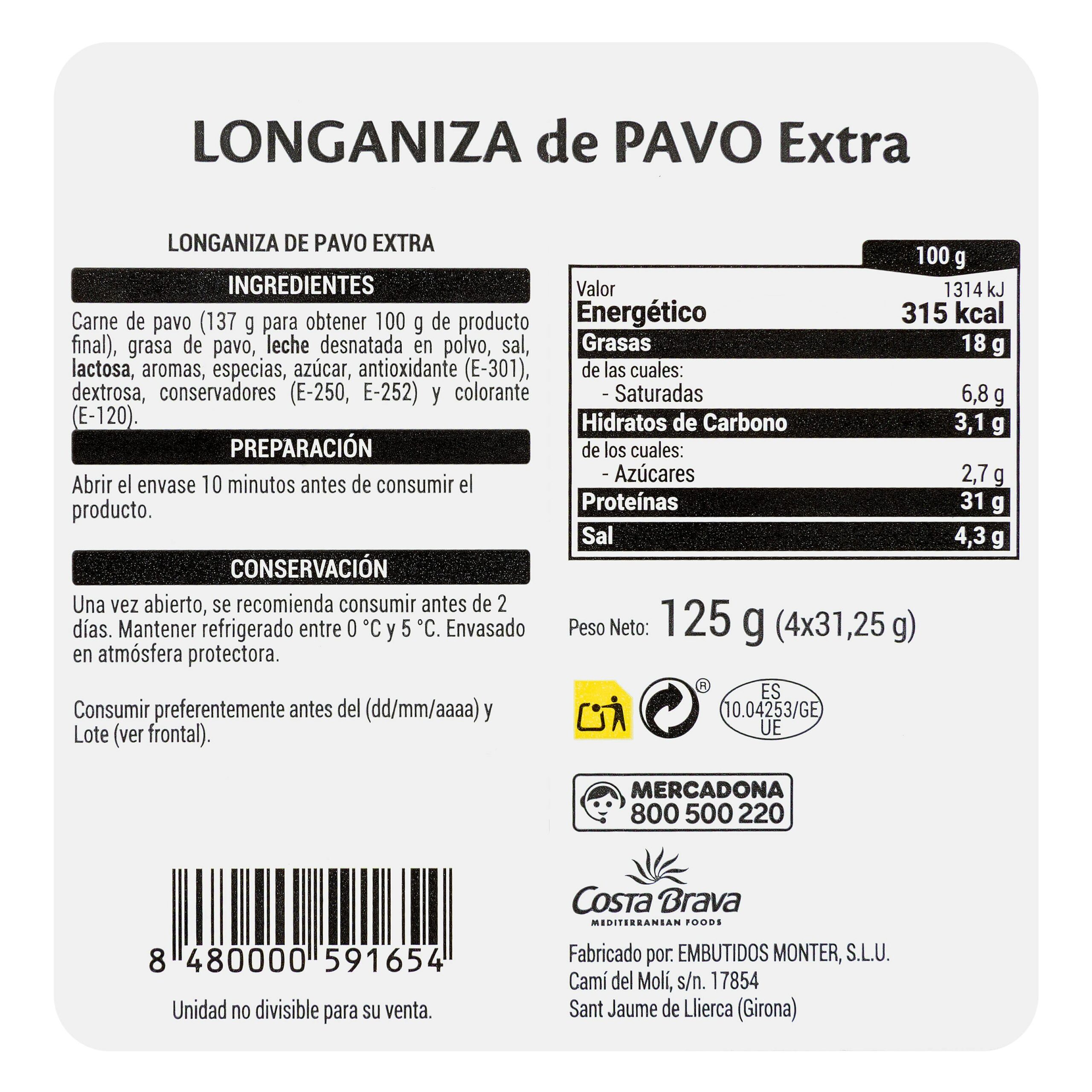 Longaniza de pavo extra lonchas, un embutido selecto de la tradición española.