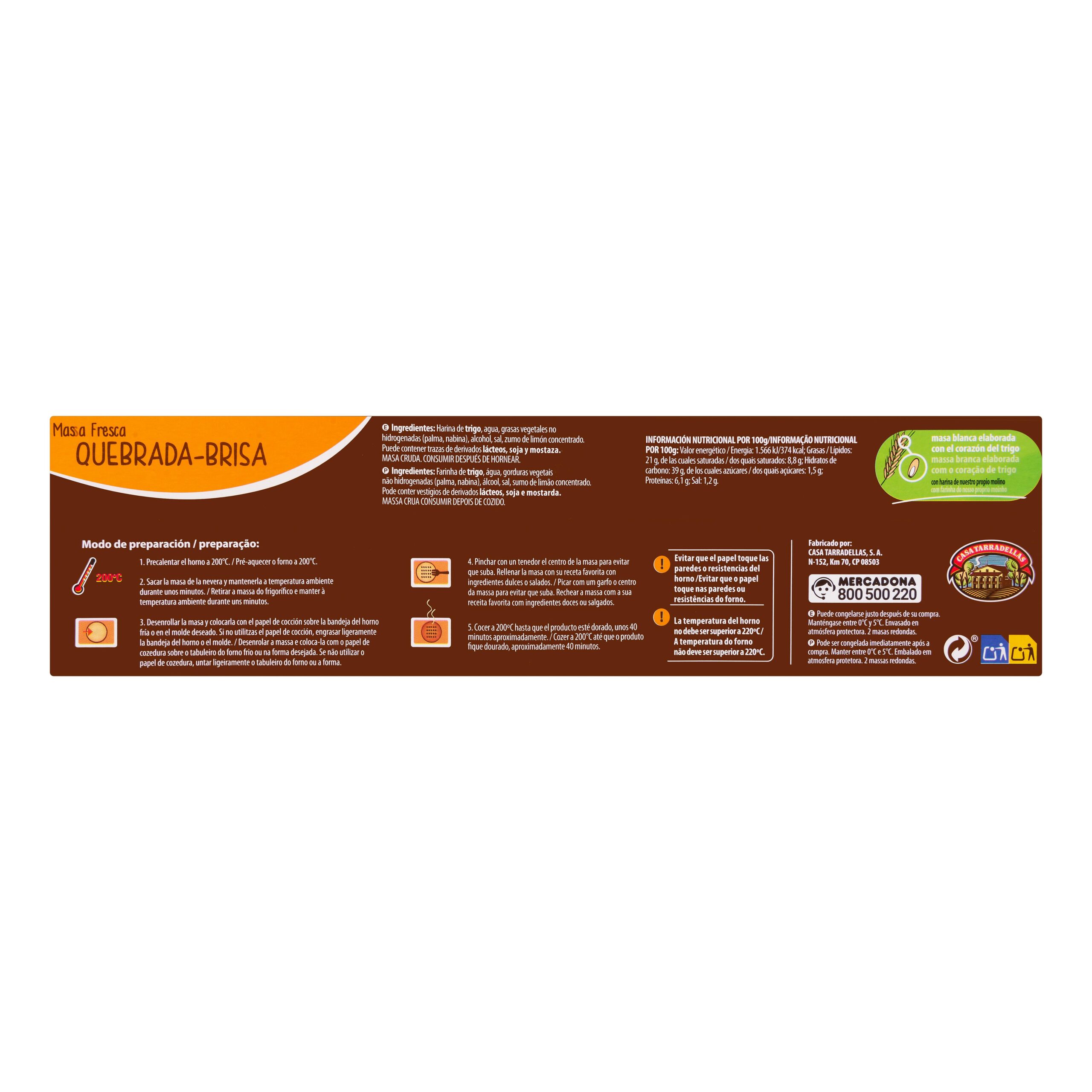 Masa fresca quebrada brisa Hacendado — Masas listas para recetas rápidas.