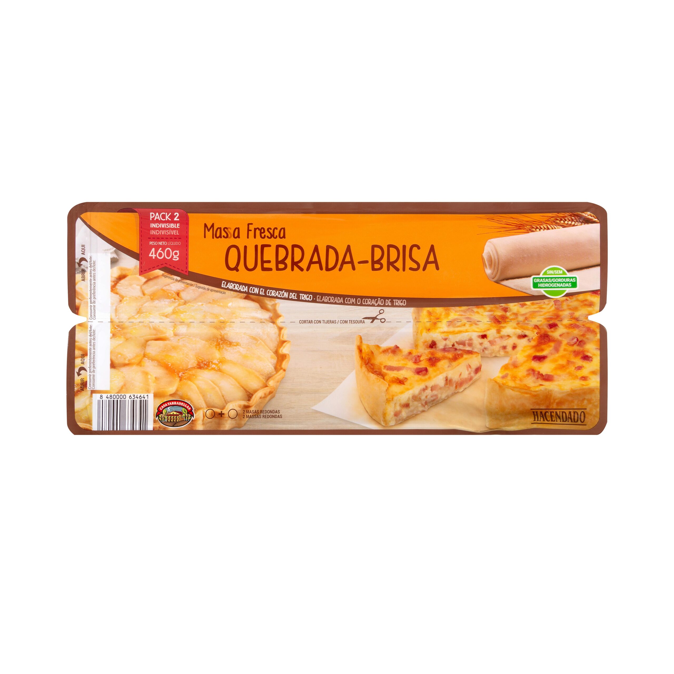 Masa fresca quebrada brisa Hacendado. Masas listas para recetas rápidas. Pensado para repostería casera y recetas del día a día. Formato aproximado: 0.46 kg. Apto para clientes en Europa que buscan sabores y formatos habituales en España.