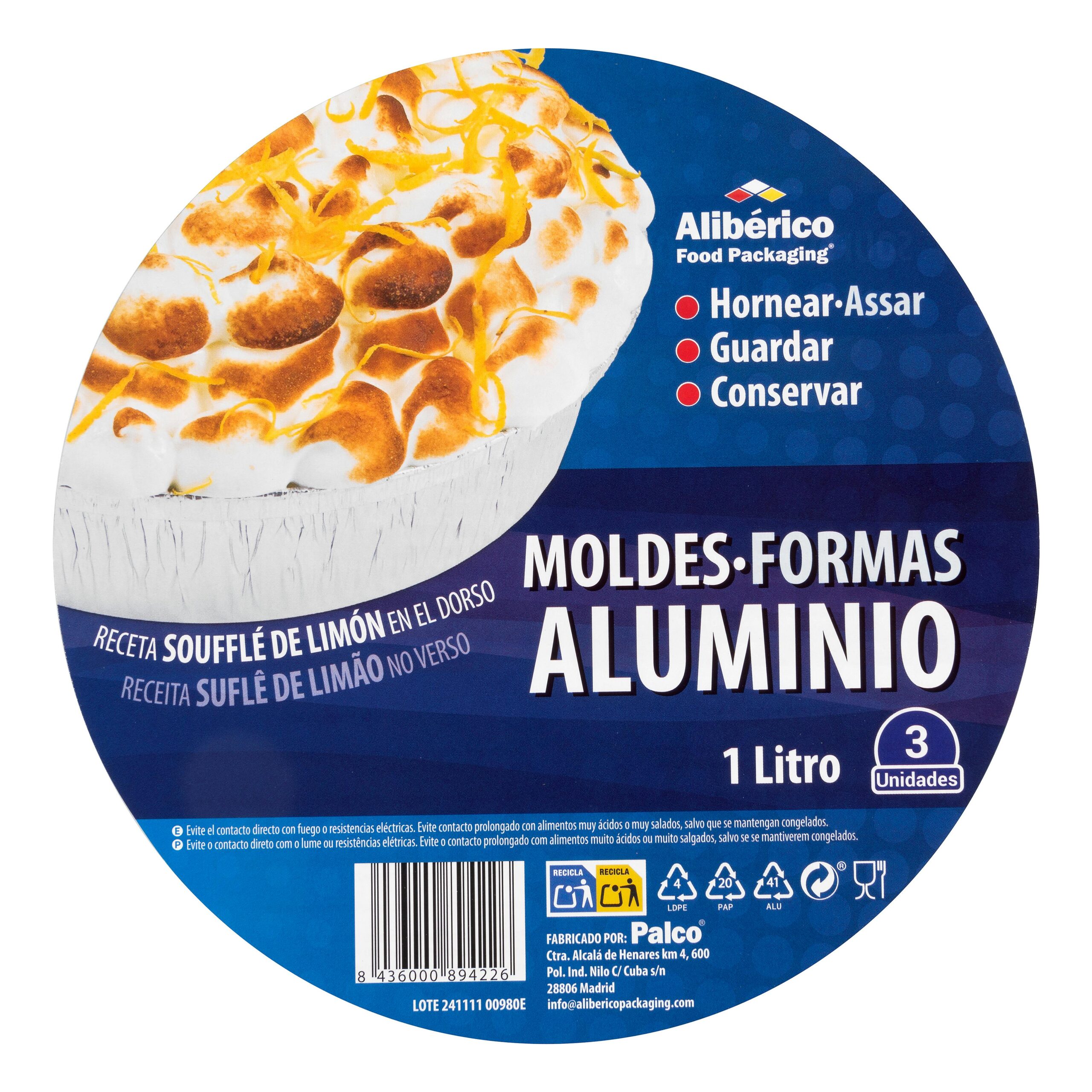 Molde de aluminio redondo 1L Alibérico, producto de limpieza del hogar fabricado en España.