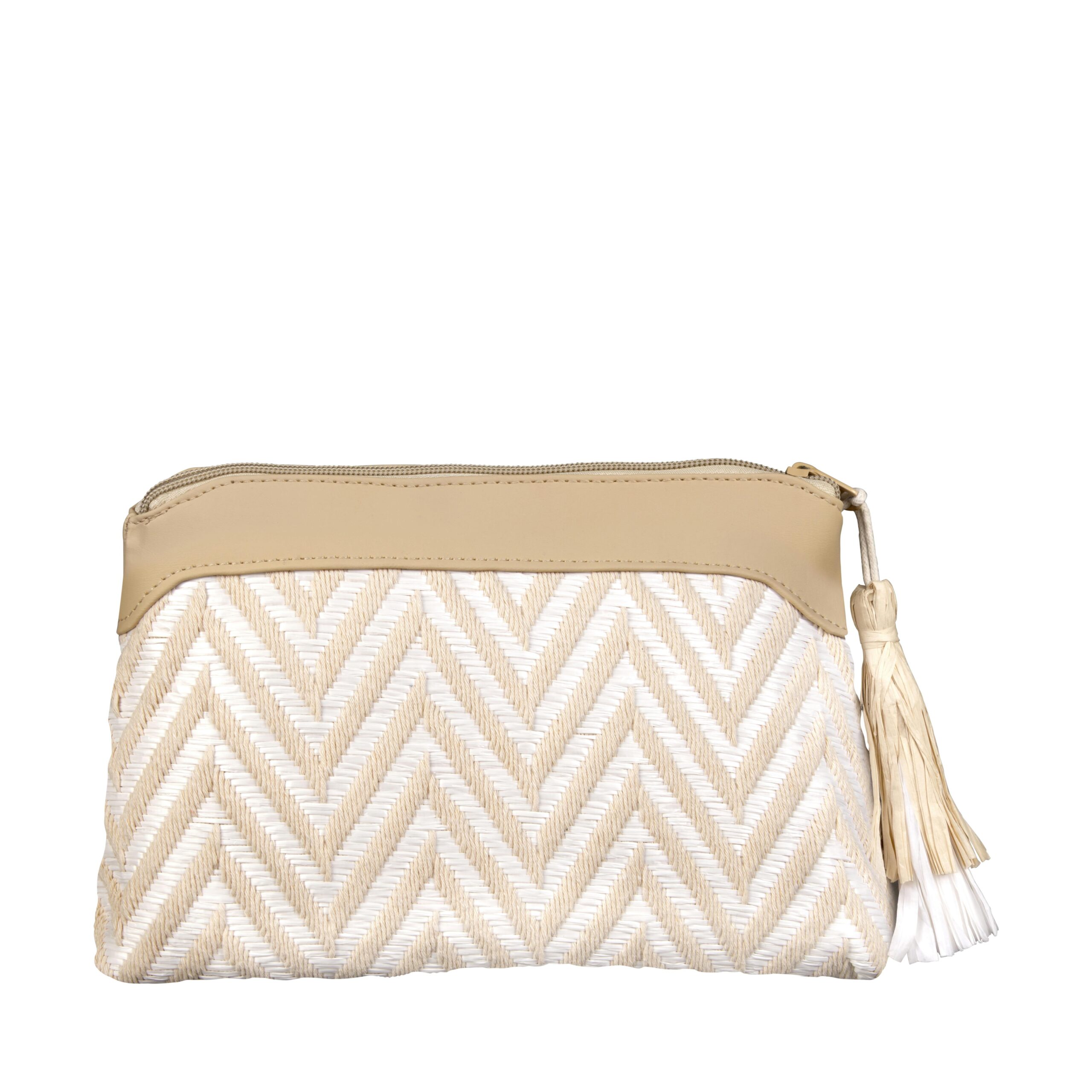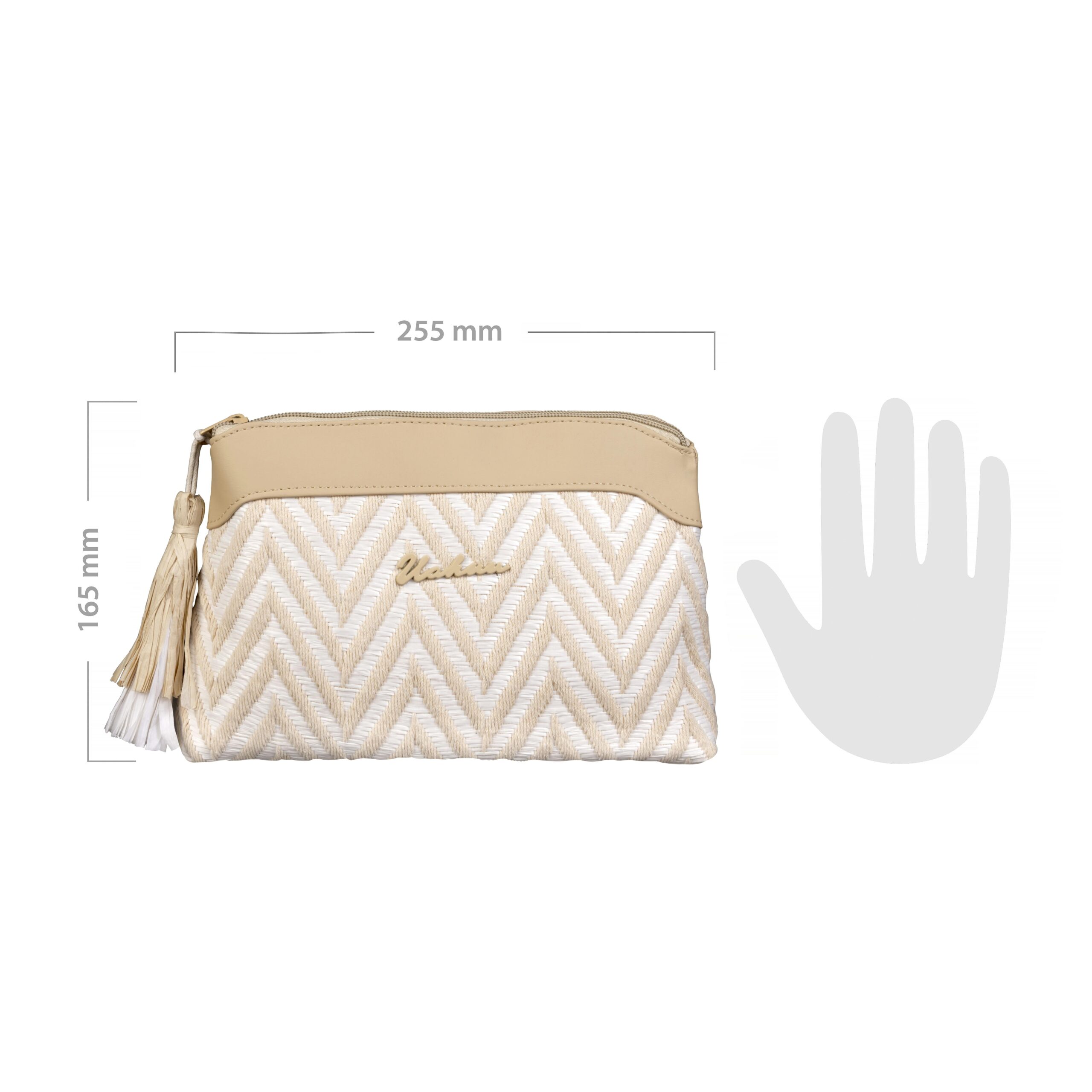 Neceser beige y blanco Uahuu mediano con asa, pensado para tu higiene y cuidado personal de cada día. Fácil de usar y adecuado para la rutina habitual.