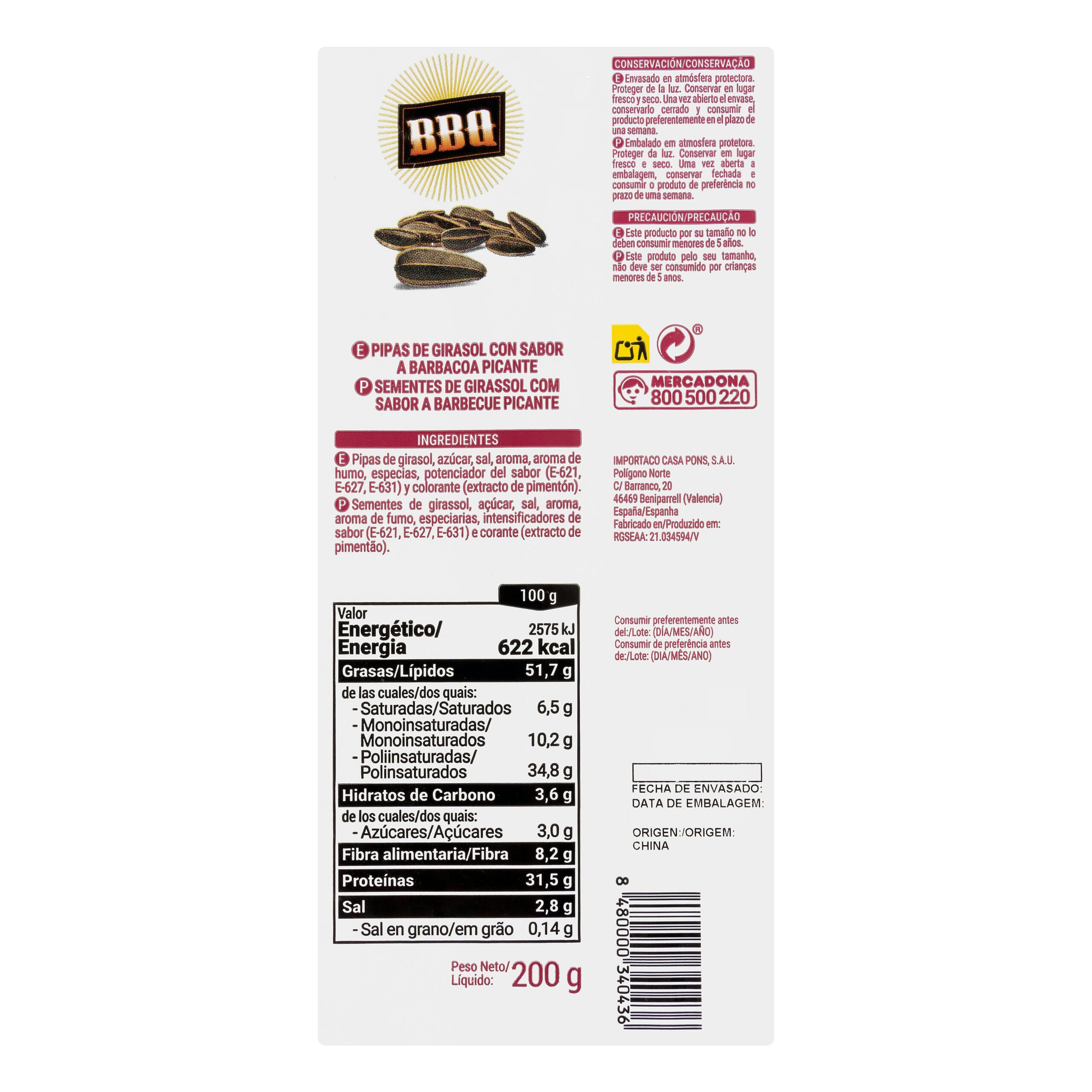 Pipas girasol barbacoa, ideal para disfrutar a diario como aperitivo o acompañamiento. Un clásico del mercado español.