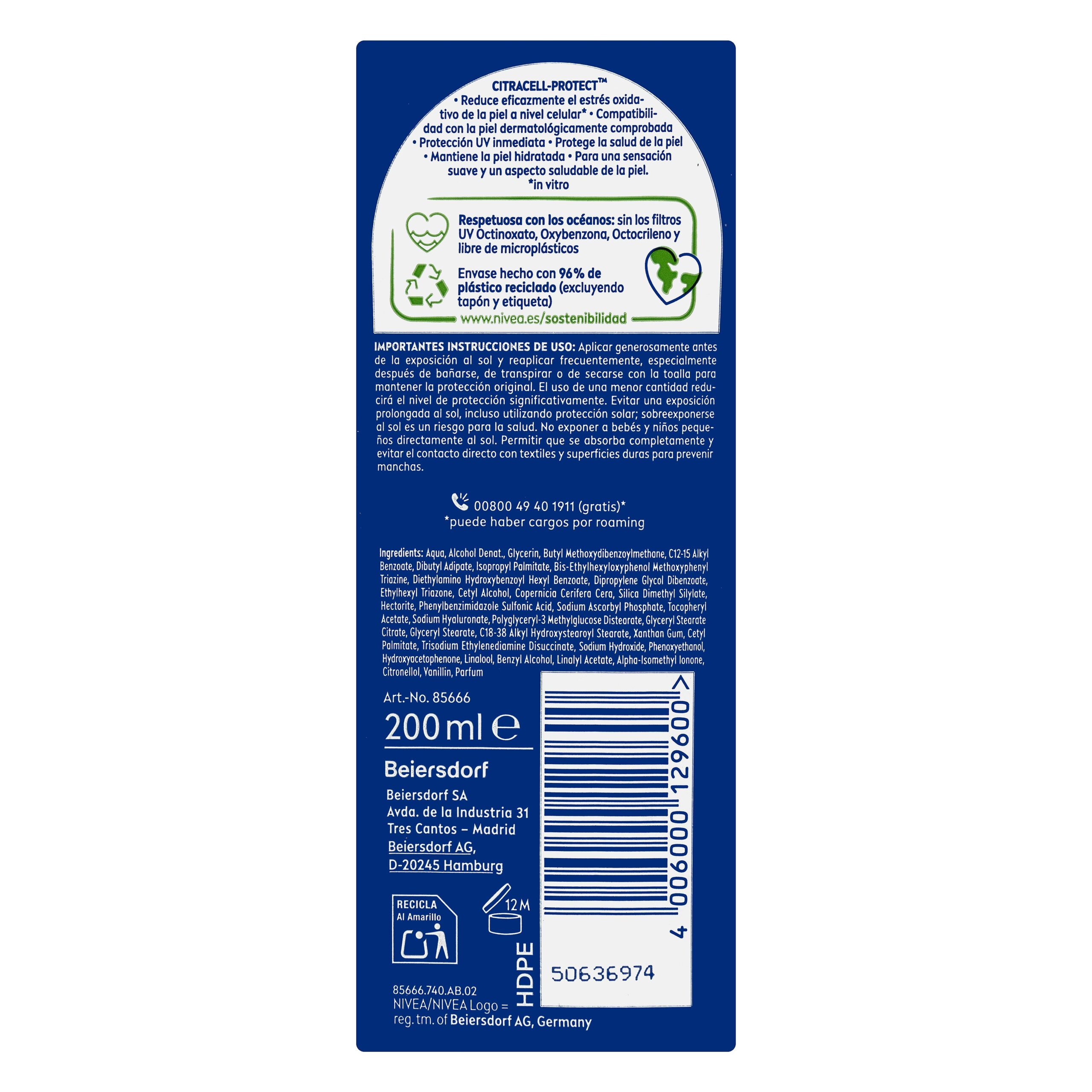 Protector solar protege e hidrata Nivea FPS 50+ para el cuidado diario.