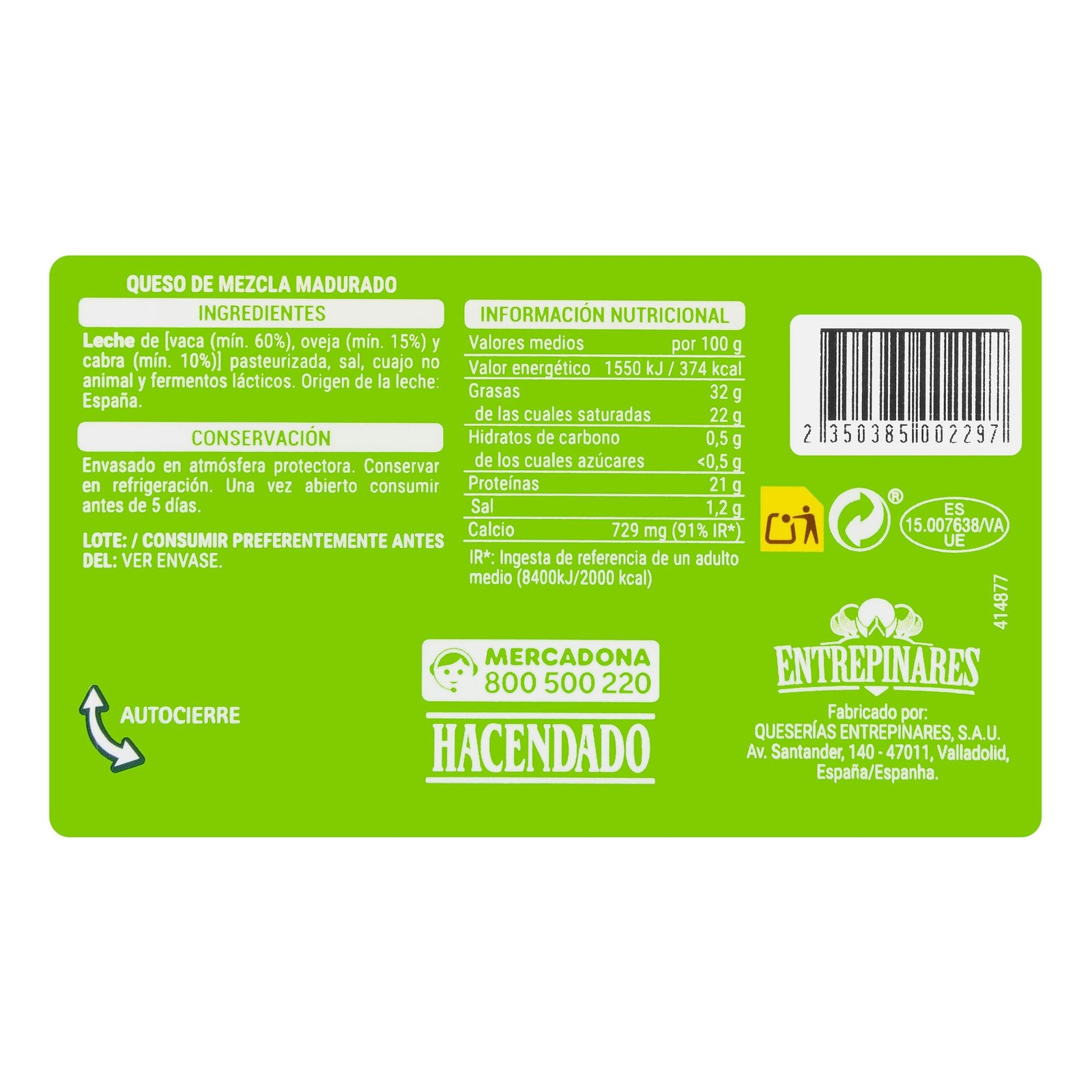 Queso lonchas tierno mezcla Entrepinares, un queso elaborado en España con sabor auténtico y versátil. Perfecto para tapas, bocadillos o para disfrutar en familia.