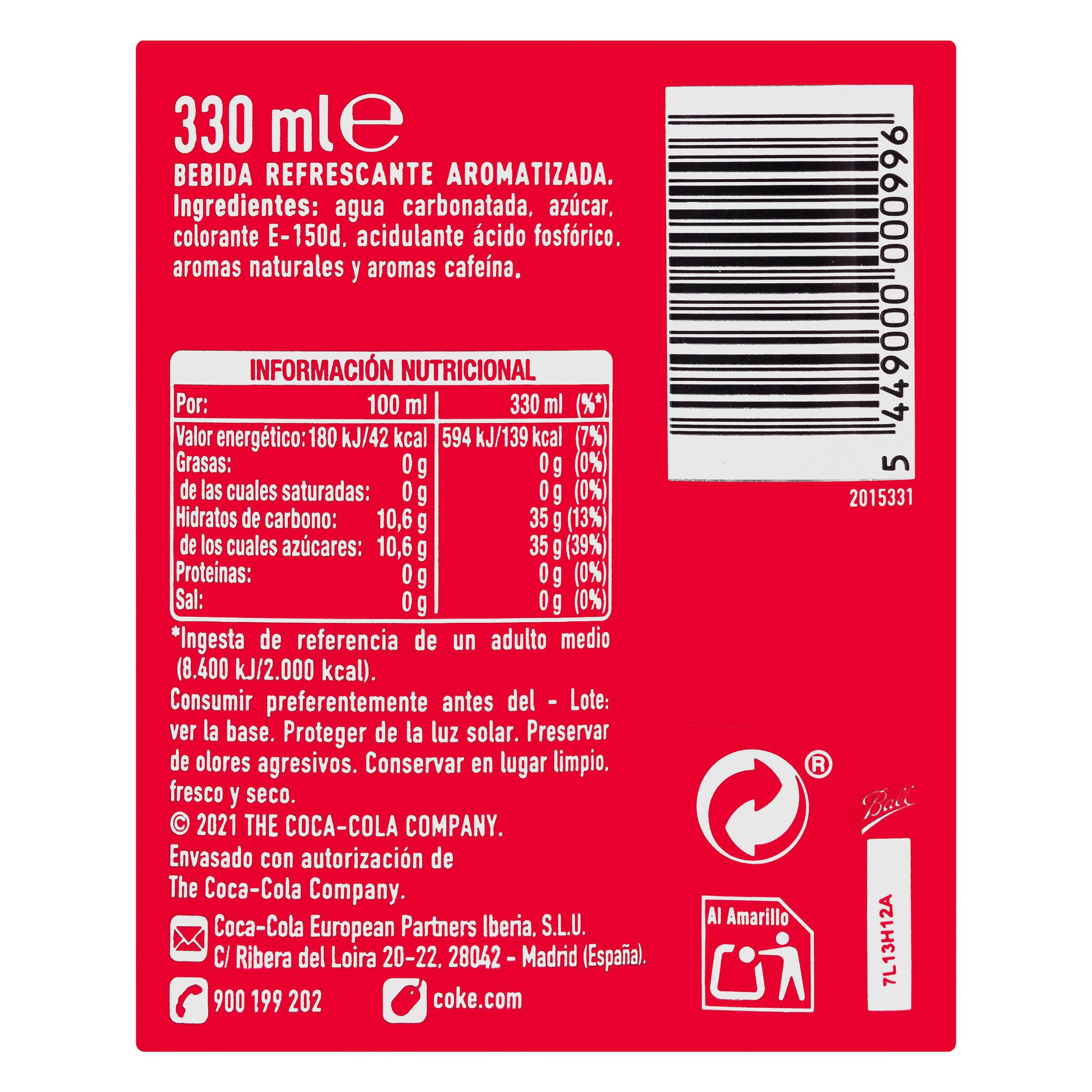 Refresco Coca-Cola. Bebida refrescante del mercado español. Disfrútala fría en tus comidas o como refresco diario.