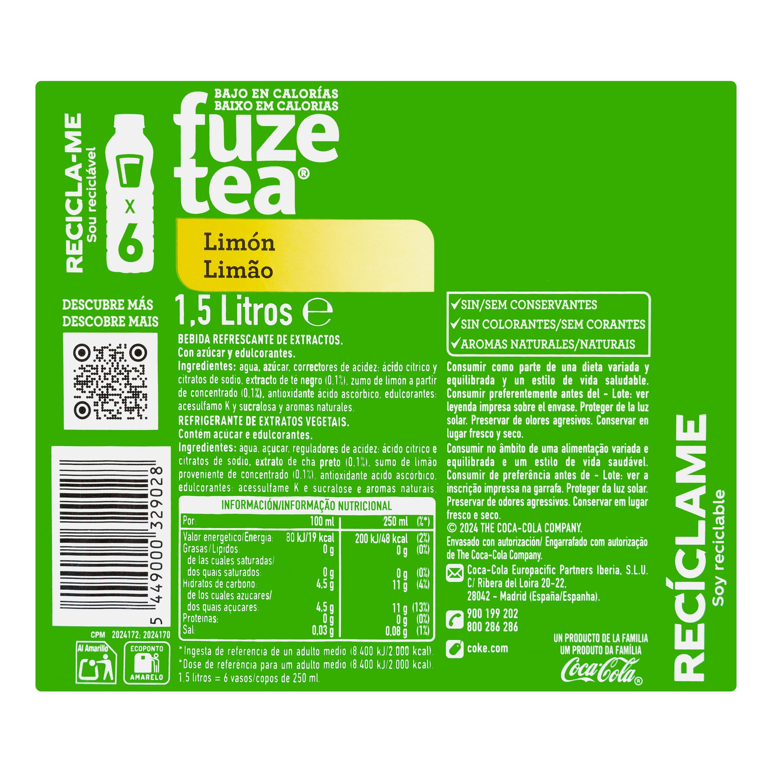 Refresco té sabor limón Fuze Tea