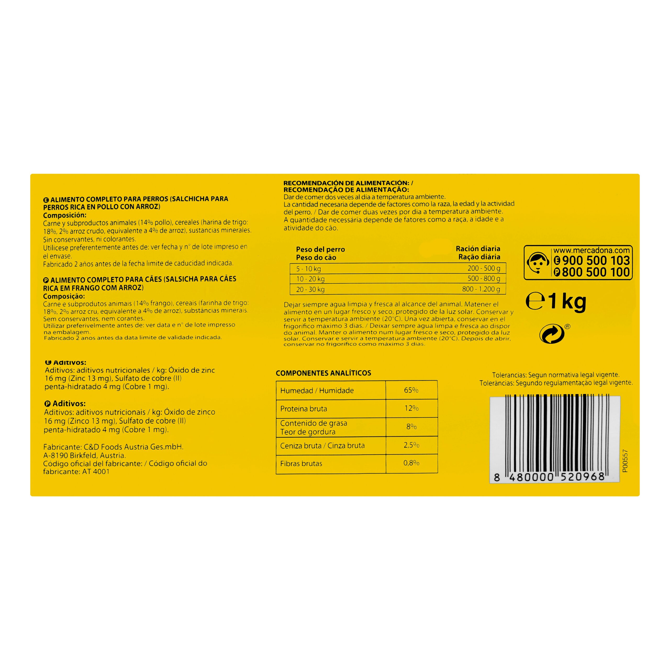 Salchicha perro adulto Delikuit con pollo y arroz