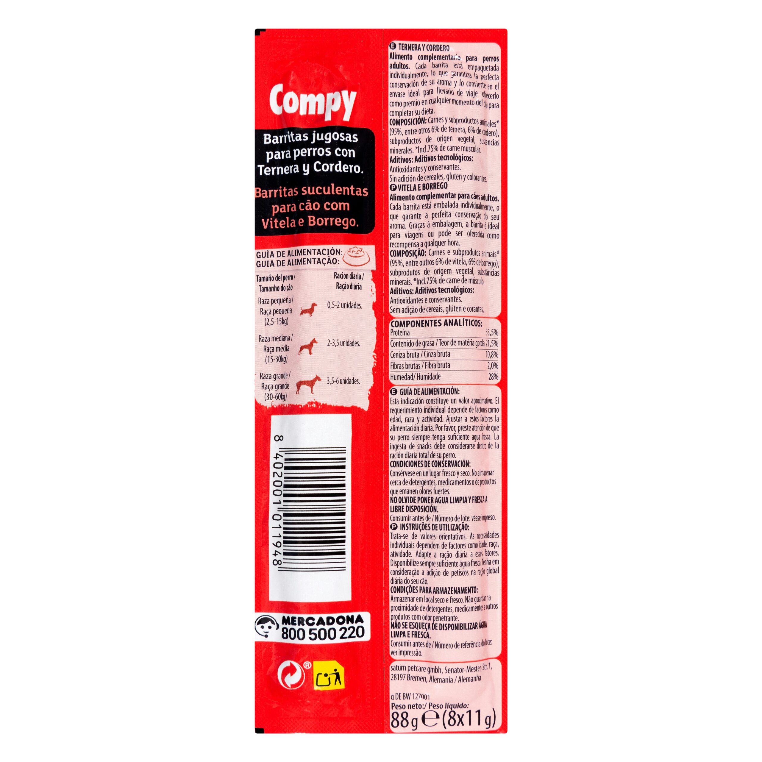 Snack barritas perro adulto de ternera y cordero Compy
