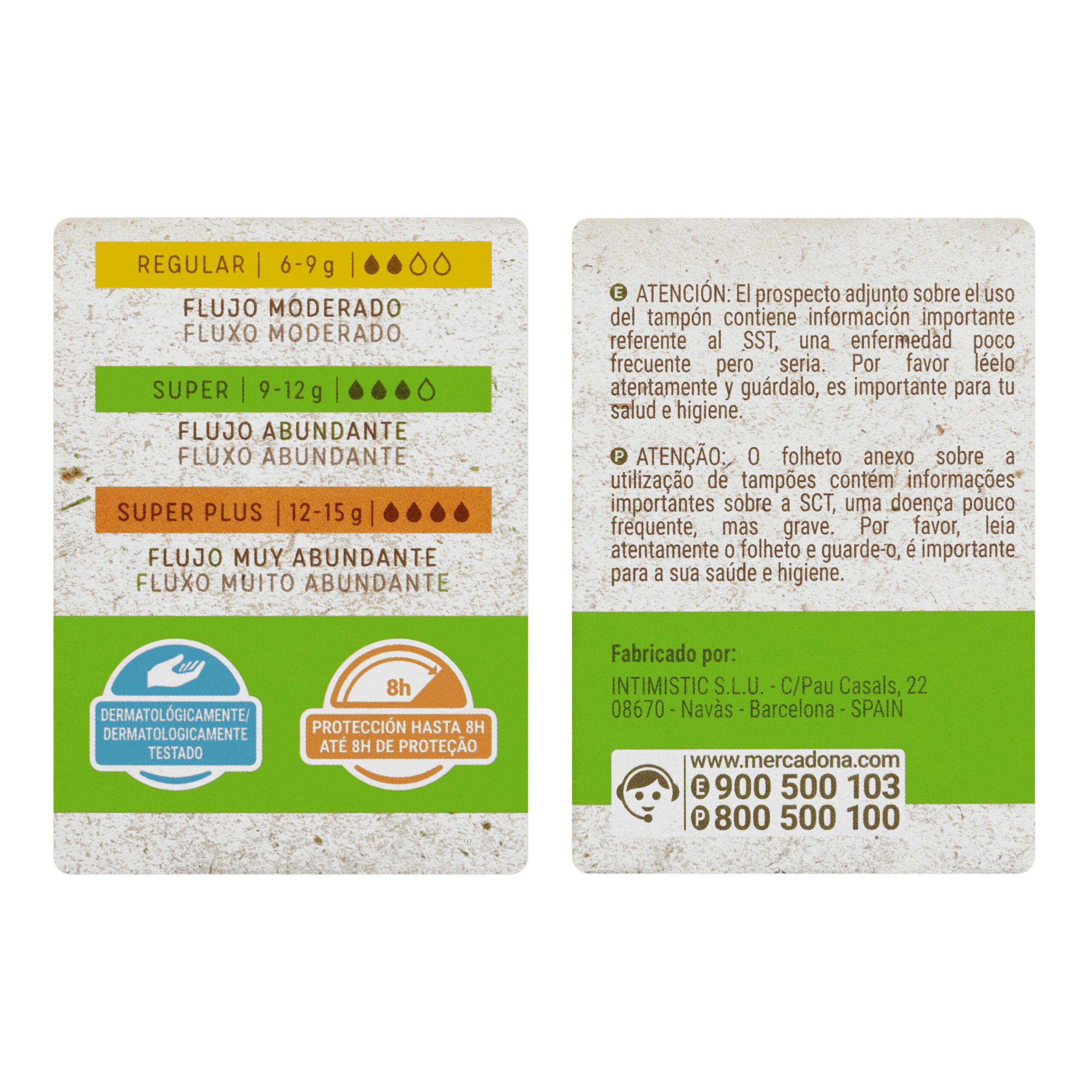 Tampones super Deliplus 100% algodón para el cuidado diario.
