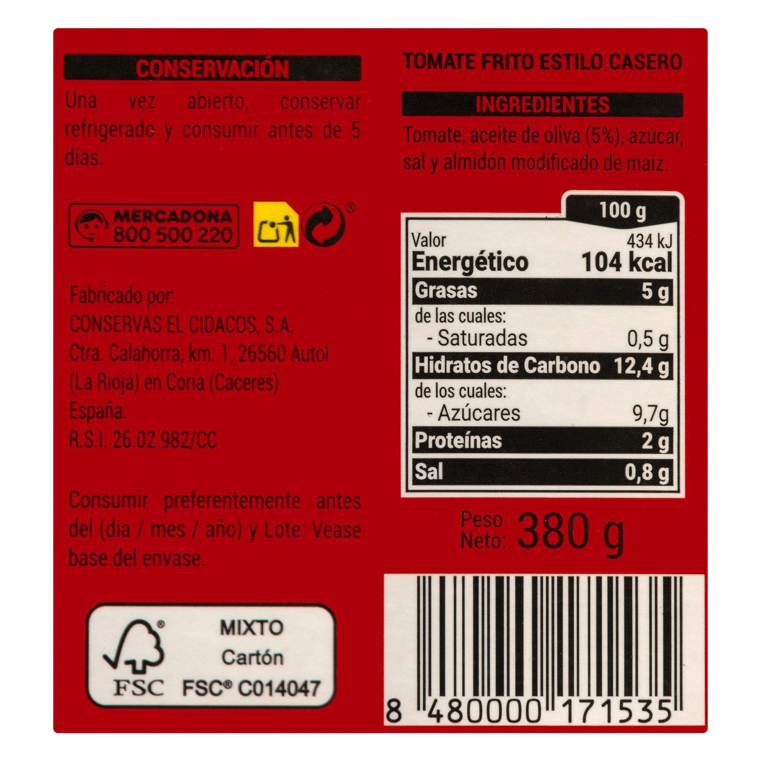 Tomate frito estilo casero Hacendado