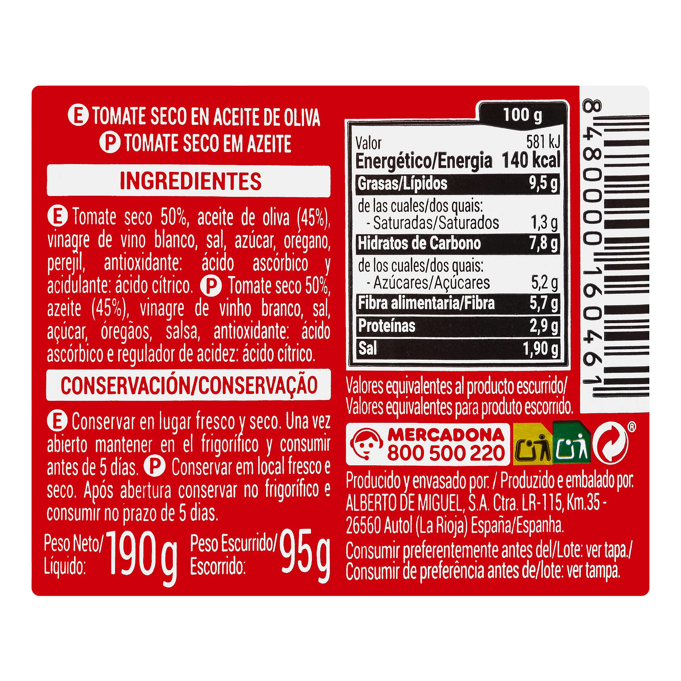 Tomate seco Hacendado en aceite de oliva con auténtico sabor español.