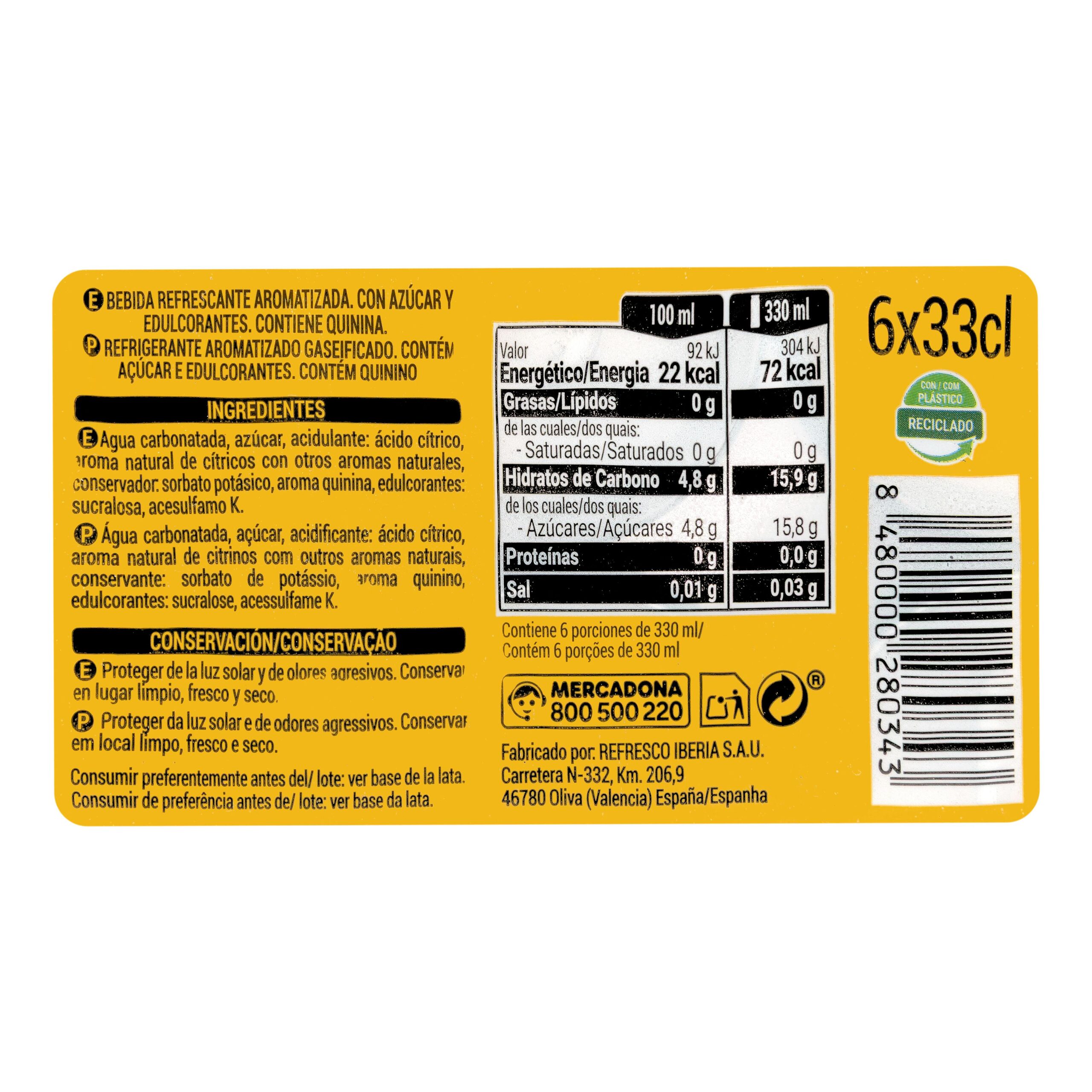 Tónica. Bebida refrescante del mercado español. Disfrútala fría en tus comidas o como refresco diario.