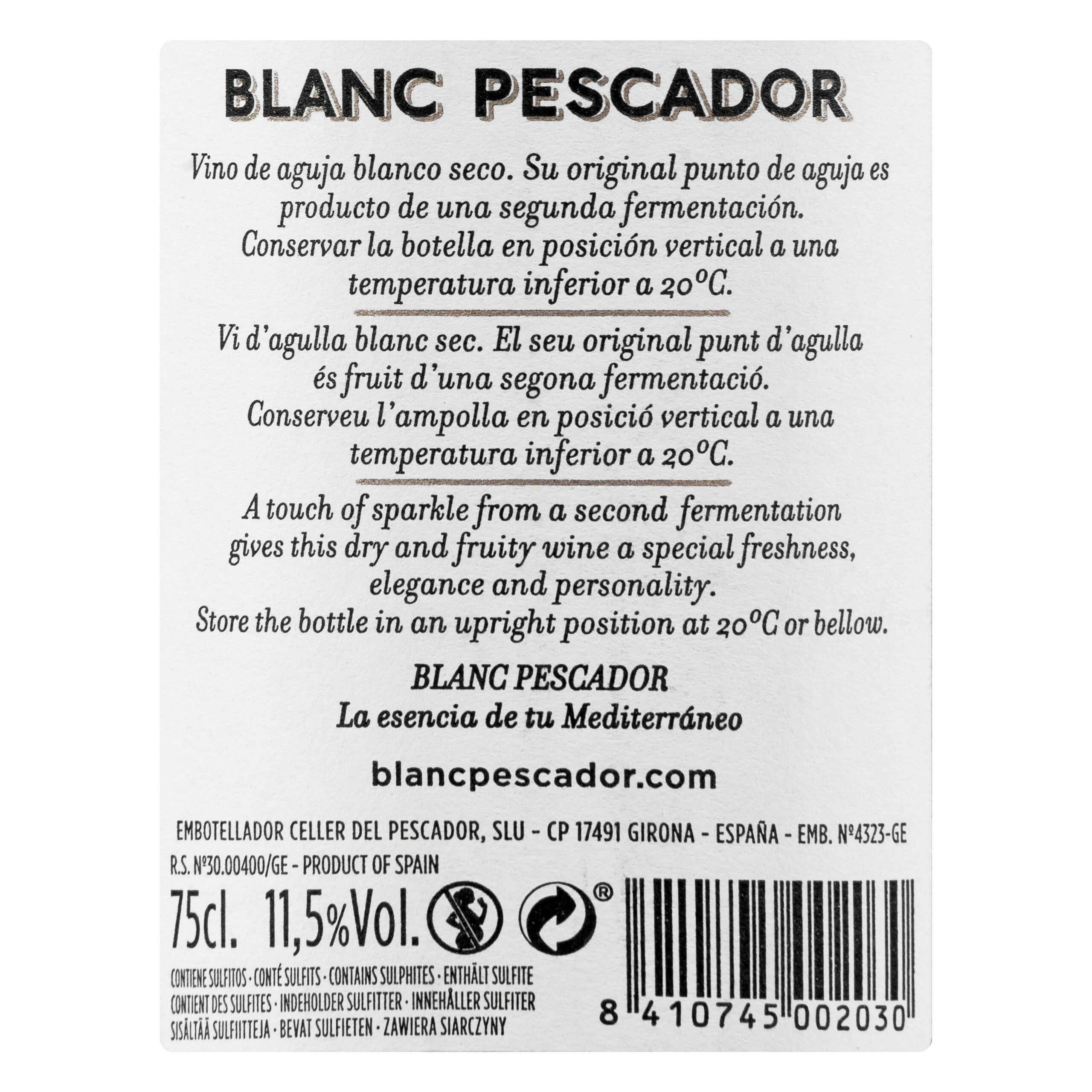 Vino blanco de aguja espumoso Blanc Pescador elaborado en España, ideal para disfrutar y compartir momentos especiales con auténtico sabor español.