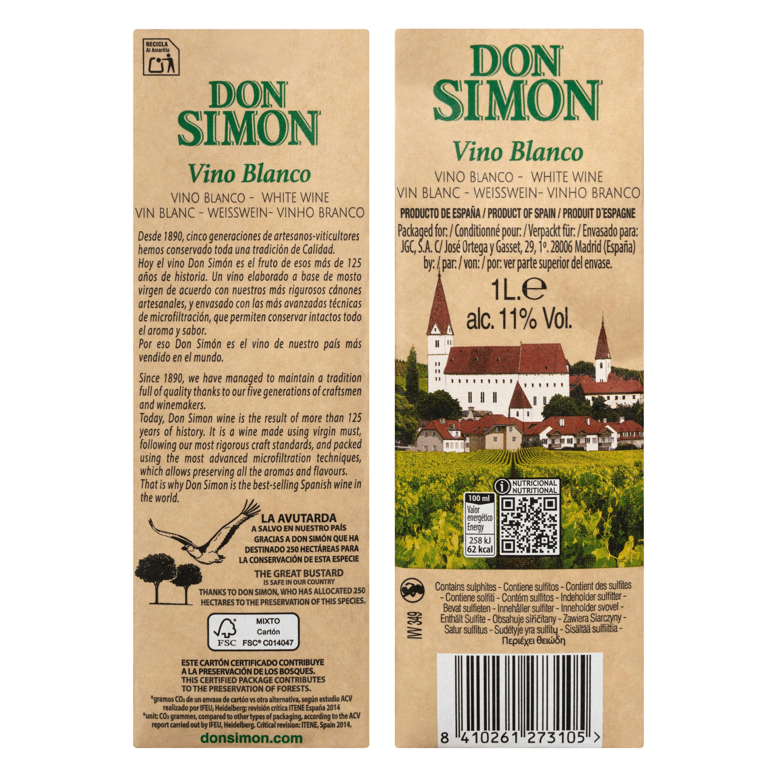 Vino blanco Don Simón elaborado en España, ideal para disfrutar y compartir momentos especiales con auténtico sabor español.