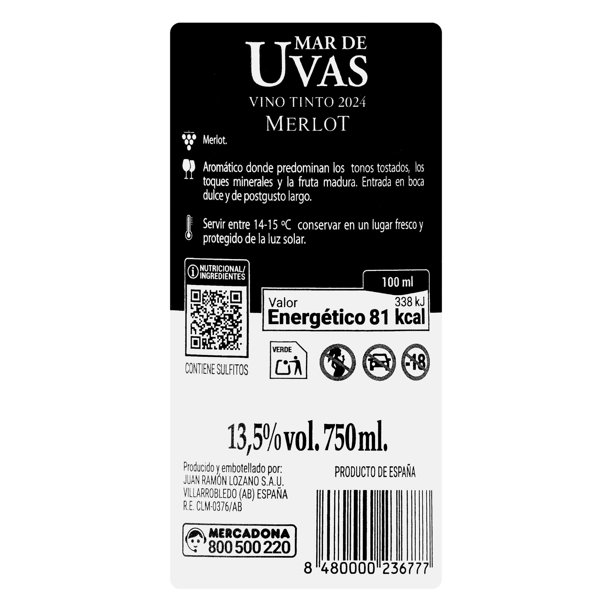 Vino tinto Merlot Mar de Uvas elaborado en España, ideal para disfrutar y compartir momentos especiales con auténtico sabor español.