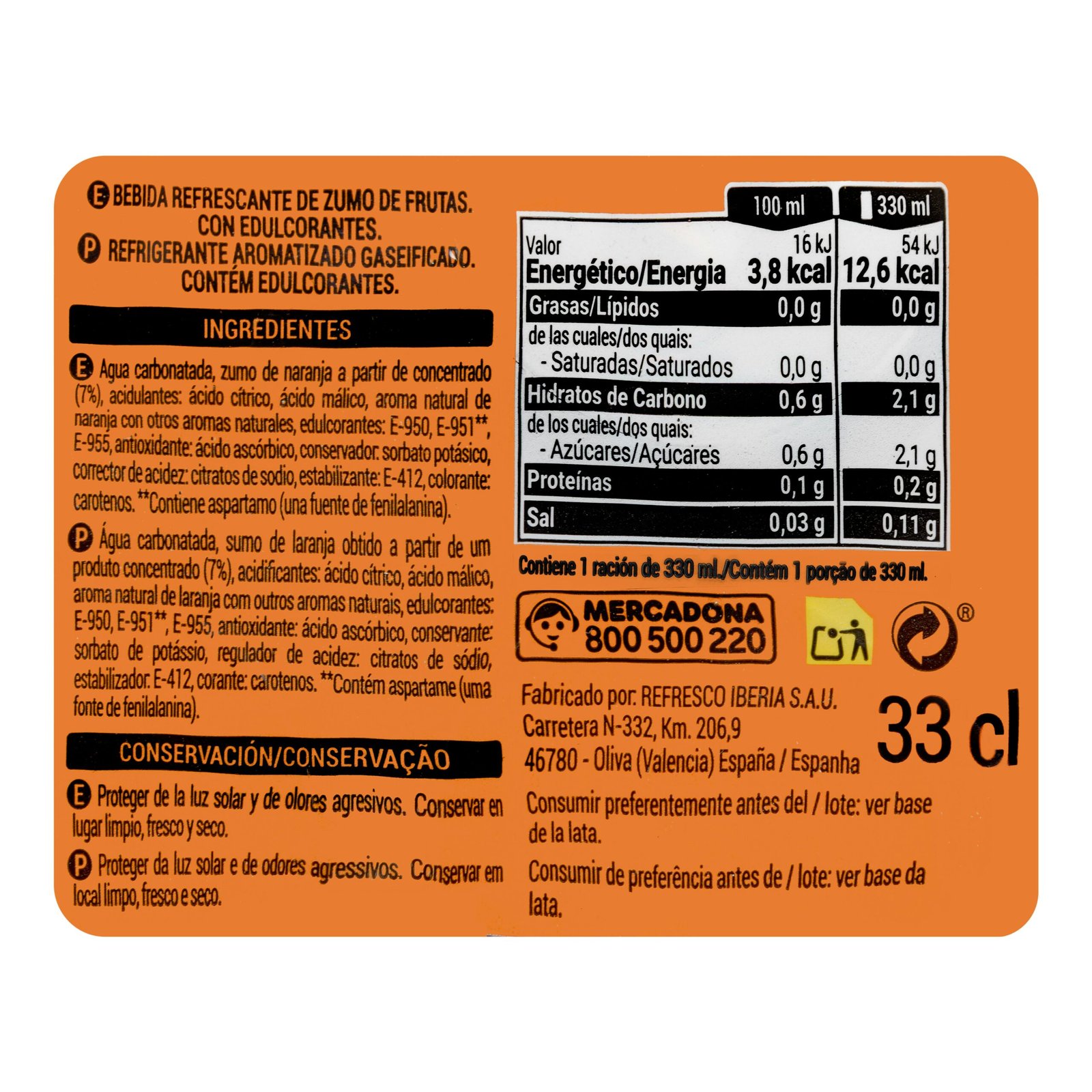 Refresco de naranja zero fresh gas, refresco para cualquier momento.