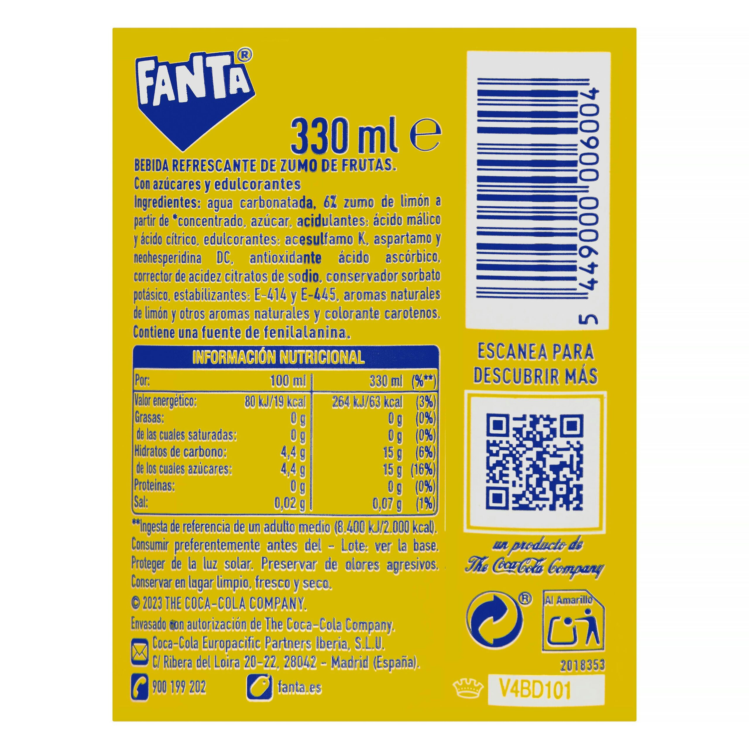 Refresco Fanta limón. Bebida refrescante del mercado español. Disfrútala fría en tus comidas o como refresco diario.